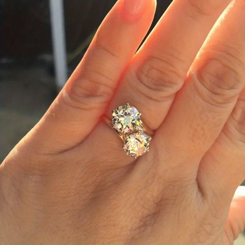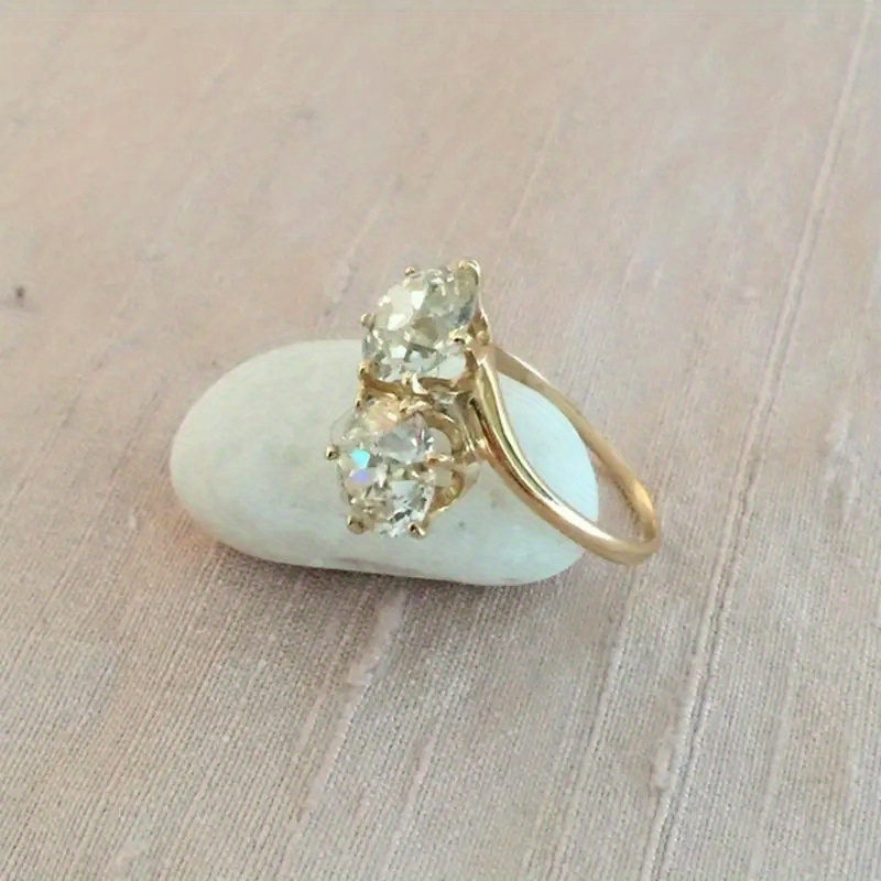 Elegant gold 6-claw double stone women's ring - synthetic square crystal zircon, perfect for weddings, parties and anniversary gifts, wedding rings | celebration jewelry | sparkling gemstones