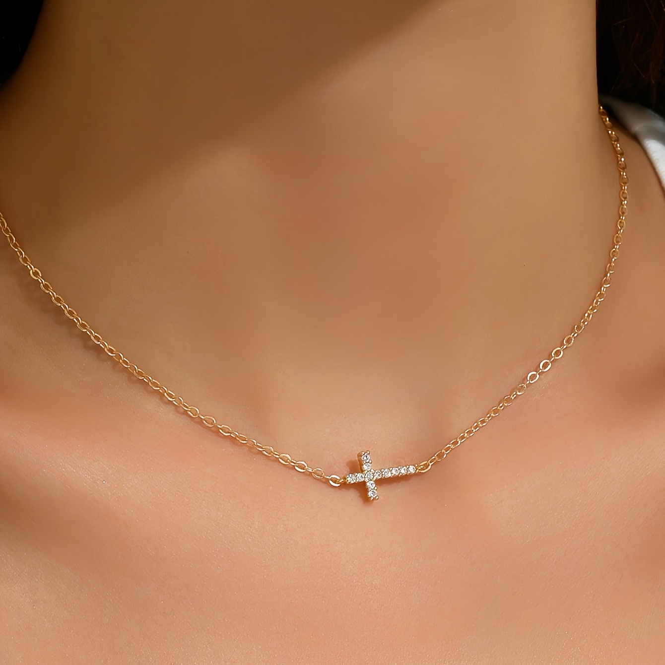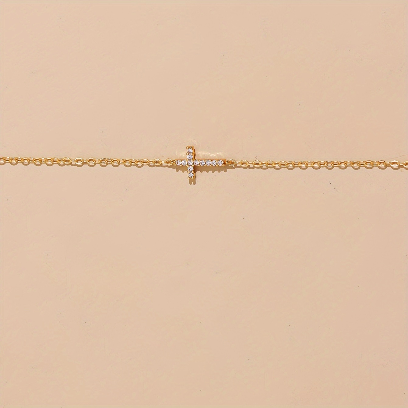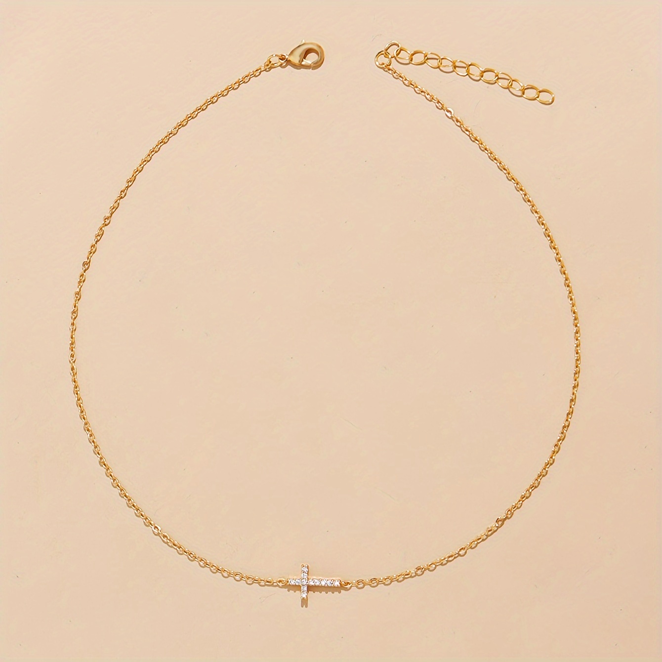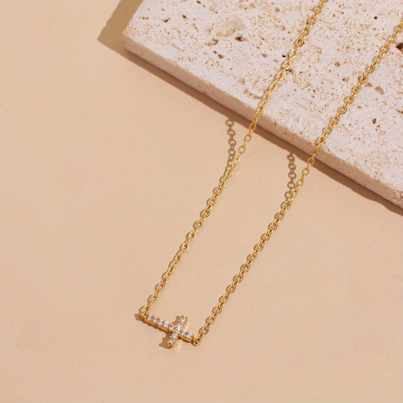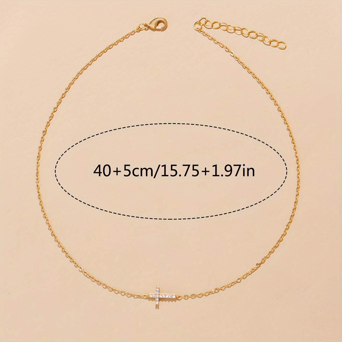 Elegant Gold Cross Pendant Necklace with Sparkling Cubic Zirconia - Exquisite Vintage Style Women's Collarbone Chain, Ideal for Birthday or Holiday Gifts, Cross Necklace