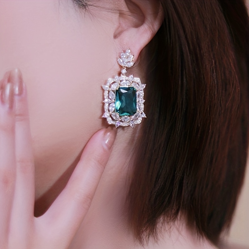 elegant luxury artificial gemstone inlaid pendant earrings for Women Banquet Party Charm jewelry Gifts