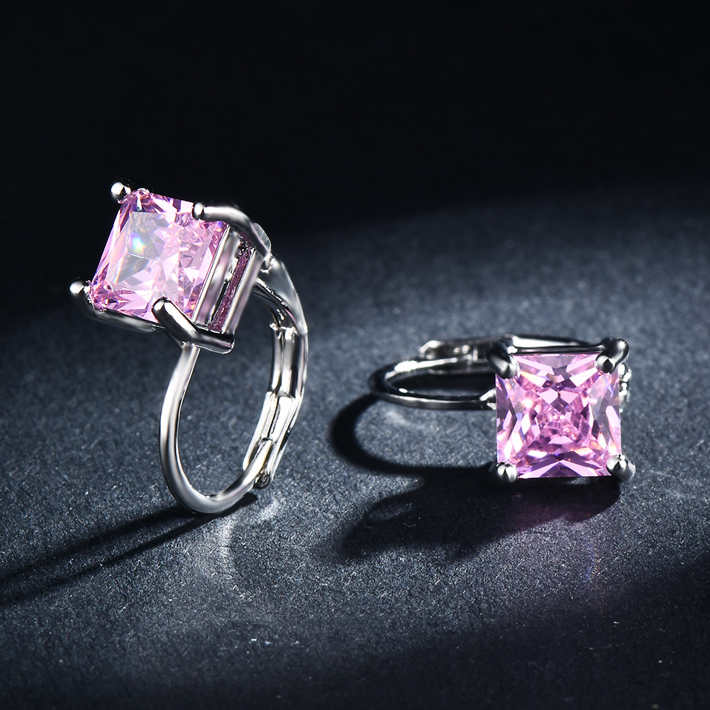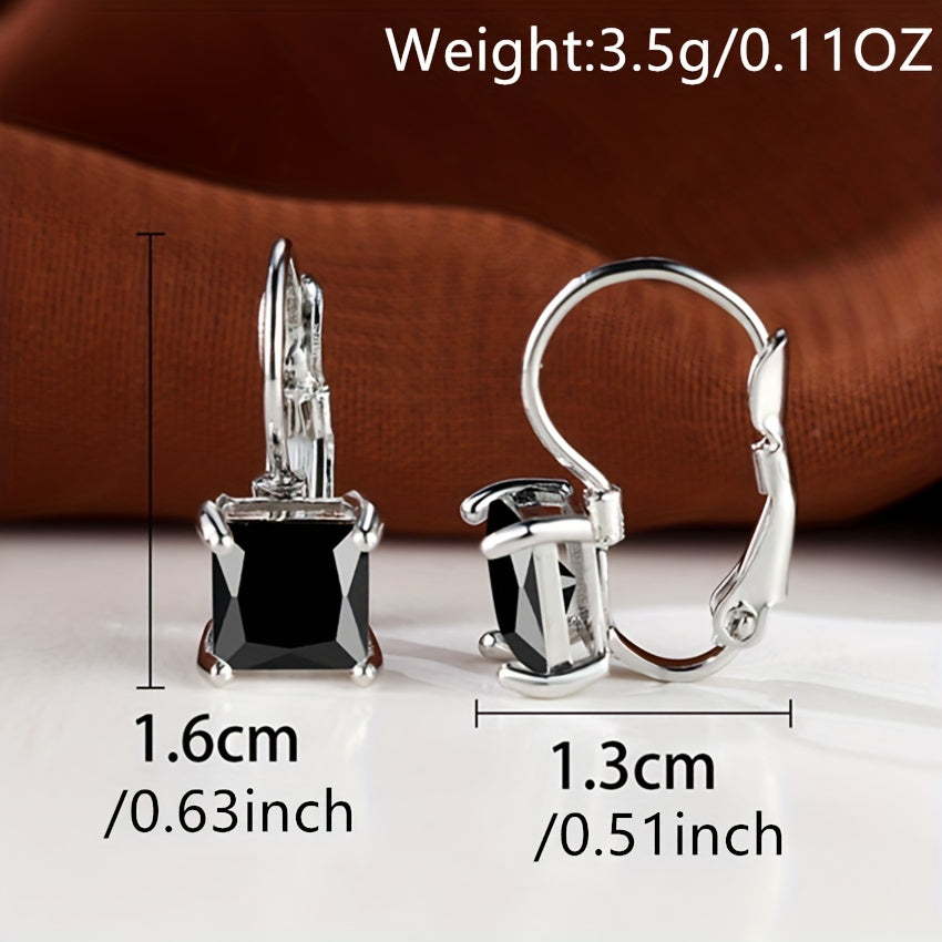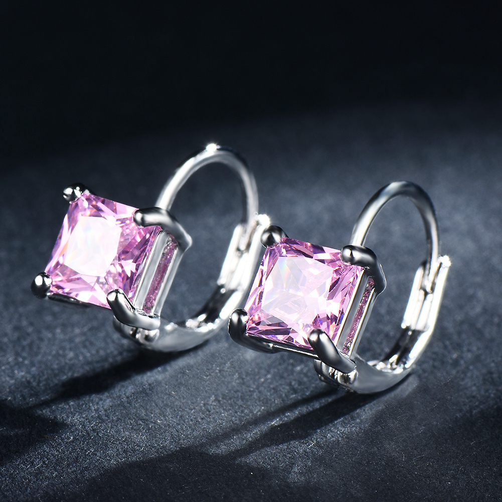 Elegant Princess Cut Zircon Pendant Earrings - Stylish Silver Circle Design, White, Black, Red, Pink, Perfect for Women's Wedding Jewelry, Perfect for Winter and New Year