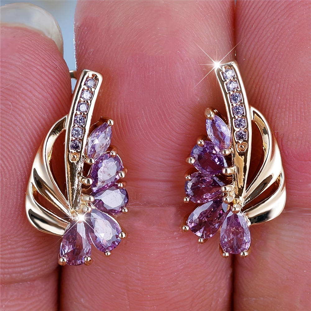 Elegant Purple Cubic Zirconia Drop Earrings - Gold Toned, Stackable Bohemian Ladies Pendant Jewelry | Perfect for Weddings and Valentine's Day