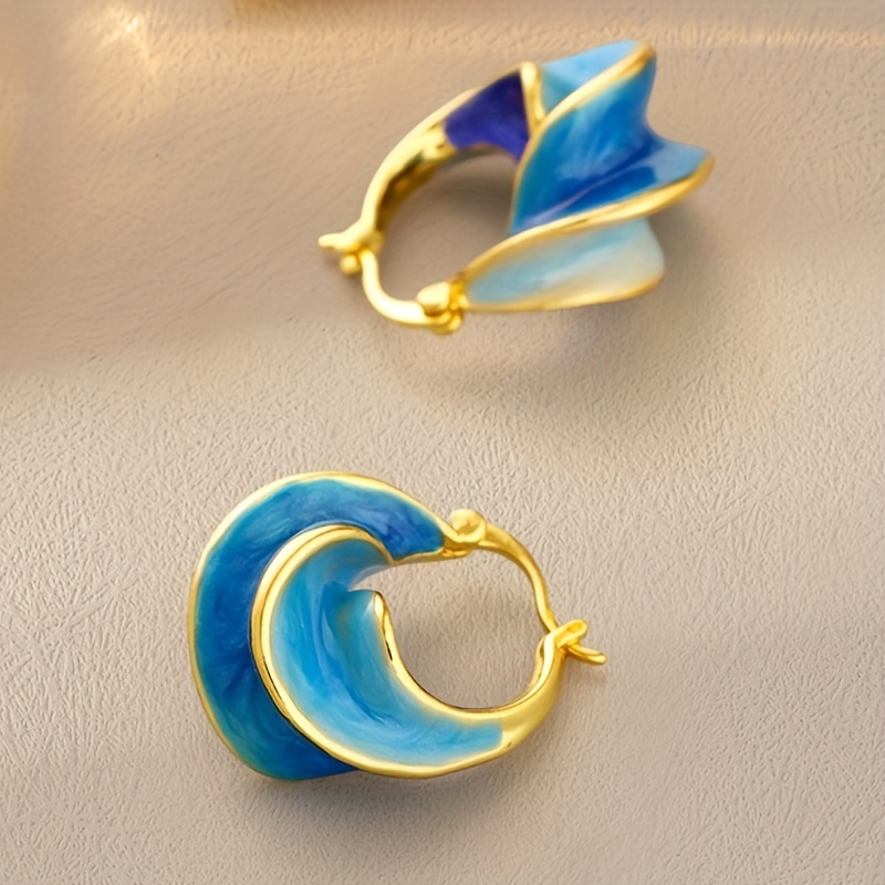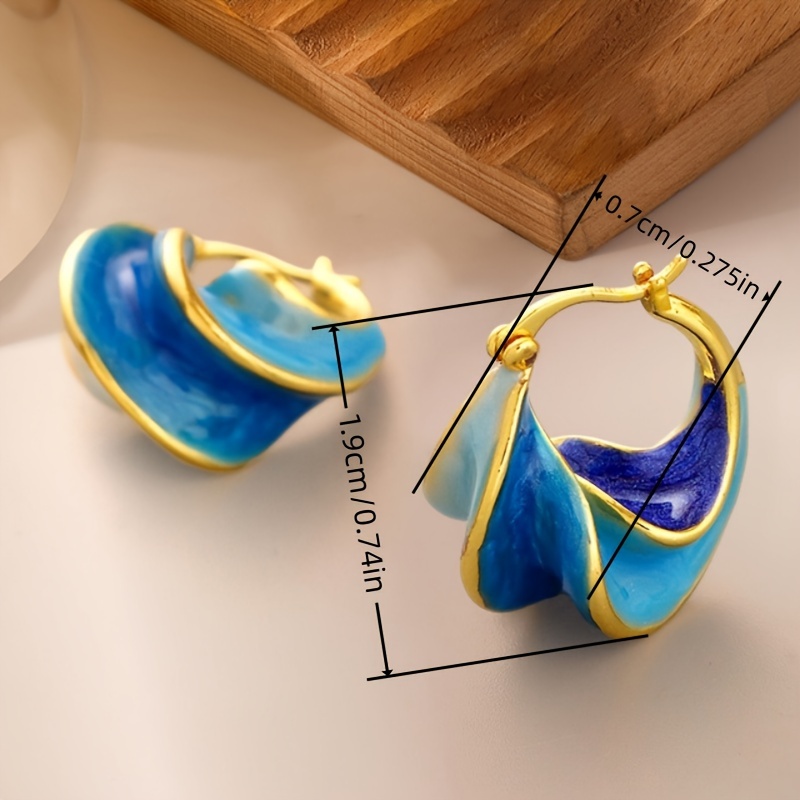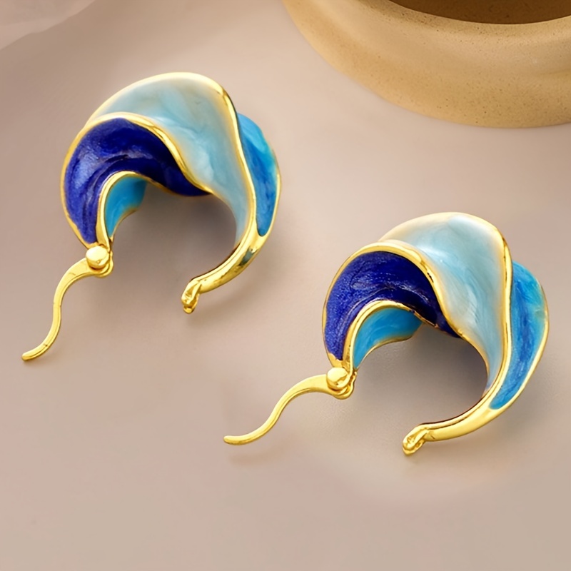 Elegant retro enamel glazed blue spiral pattern earrings, retro style fashion ladies party daily casual unique earrings