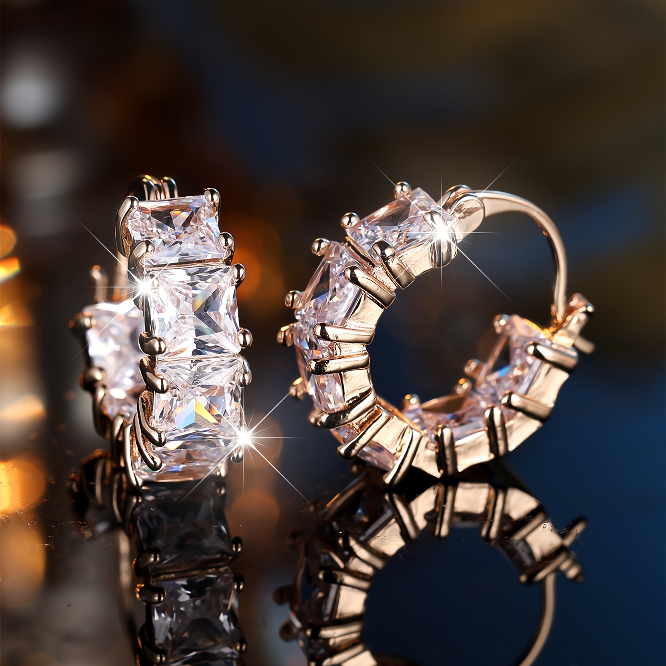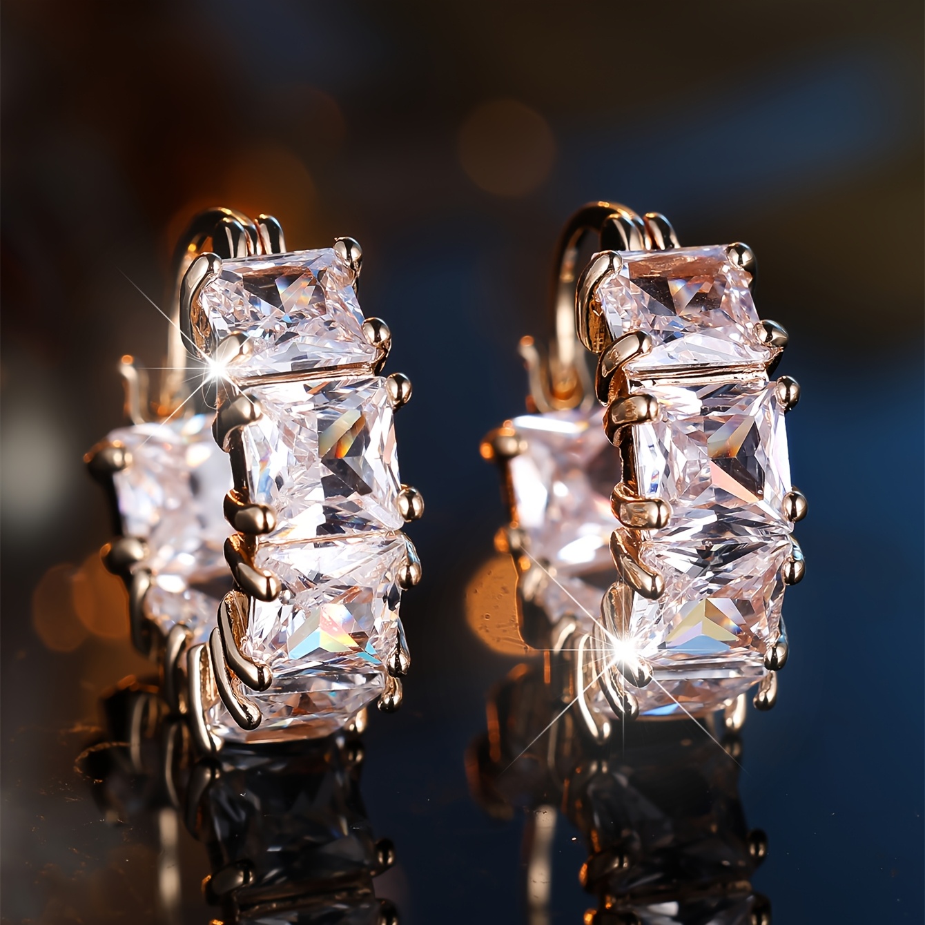 Elegant retro style full square cut synthetic cubic zirconia earrings, copper material, classic multi-purpose drop earrings, suitable for women's daily wear and vacation, ready to give gifts
