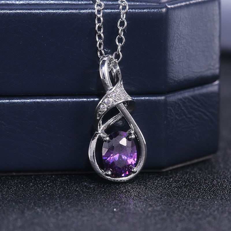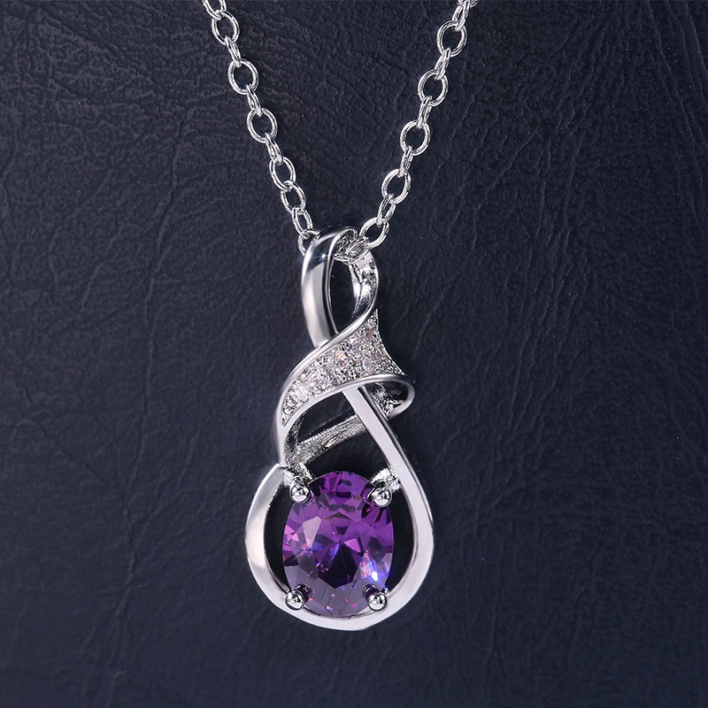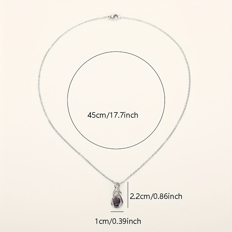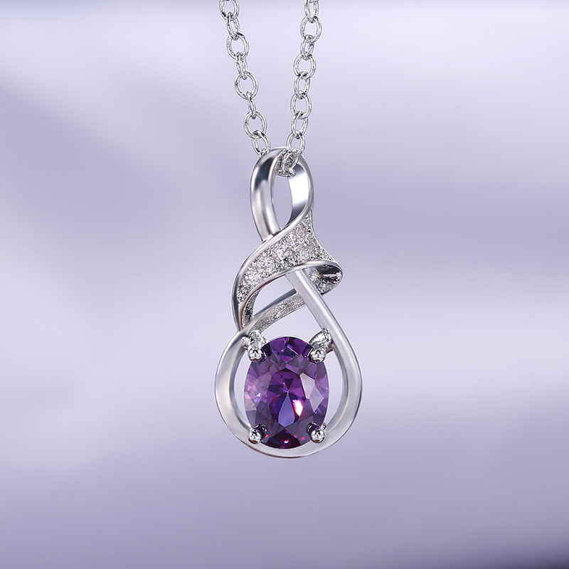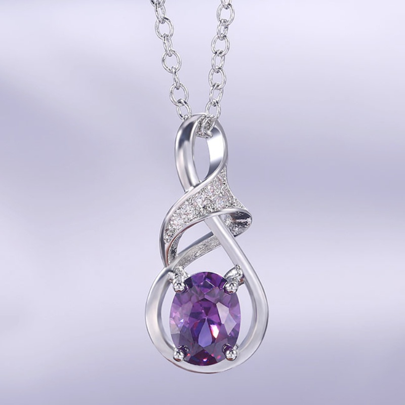 Elegant Silver Tone Oval Amethyst Pendant Necklace with Cubic Zirconia - Perfect for Weddings with Everyday Glamour, February Birthstone