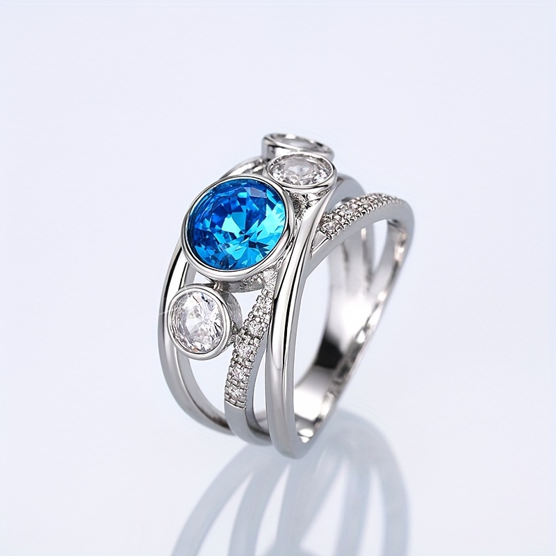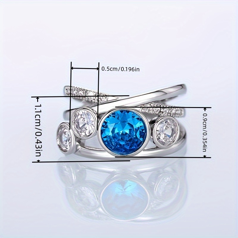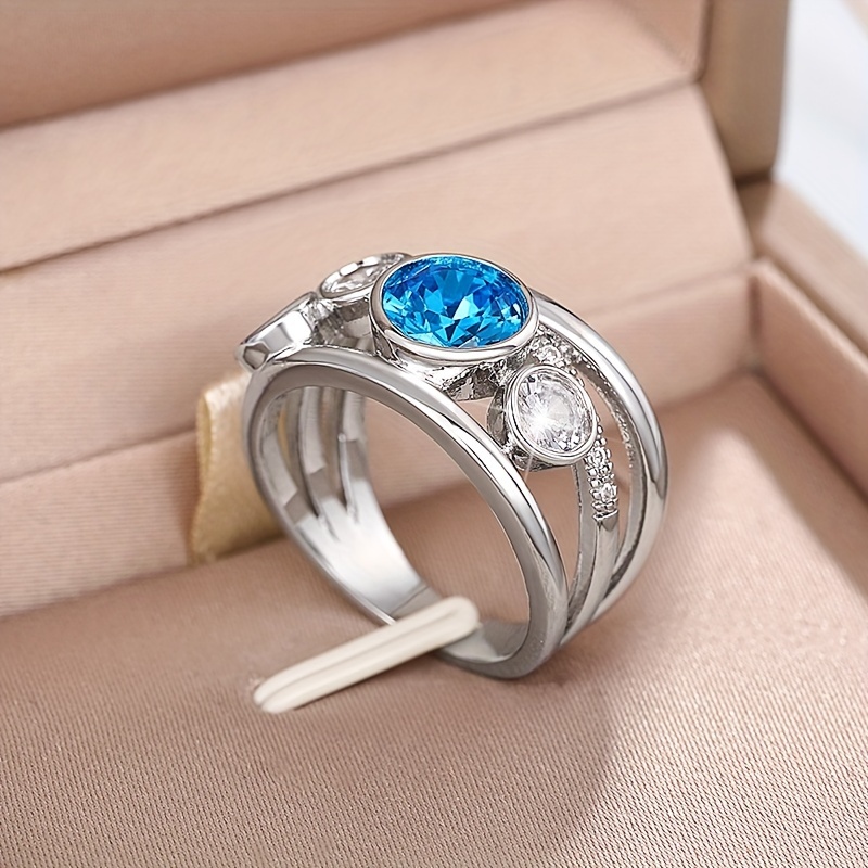 Elegant simple copper commemorative ring with blue synthetic square diamond, September raw stone, suitable for daily and party wear
