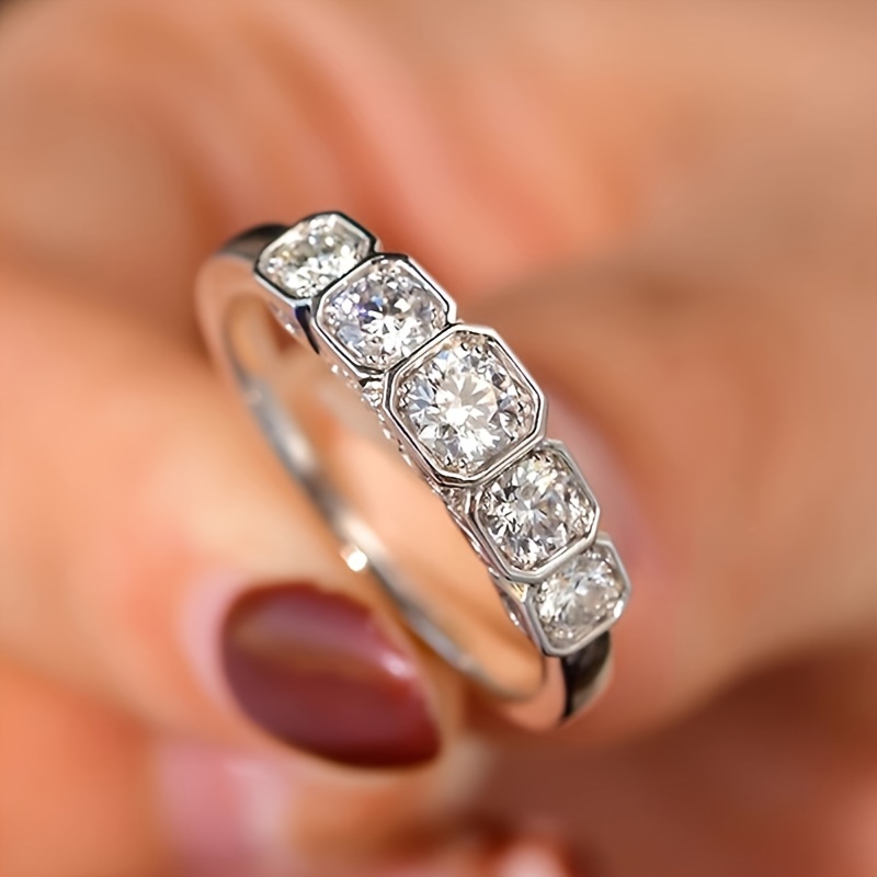 Elegant Single Row Sparkling Zirconia Ladies Engagement Ring - Stylish and minimalist with April Birthstone, made of copper, perfect for marriage proposals and everyday wear