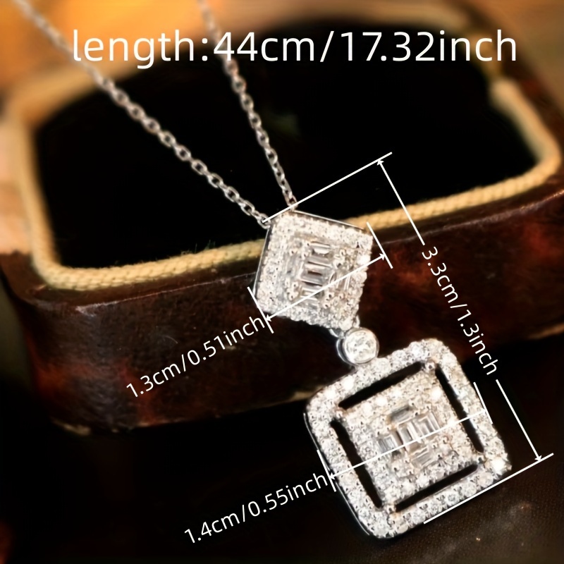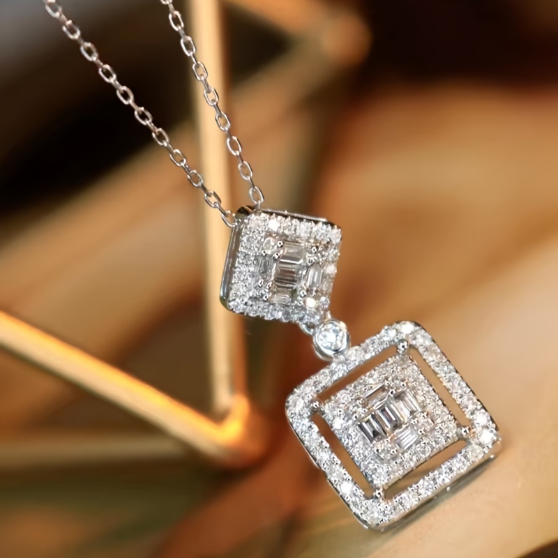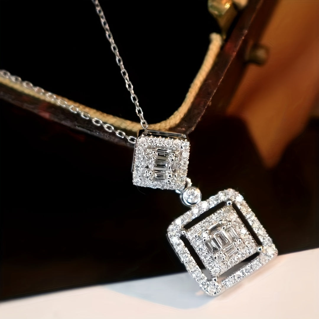 Elegant square pendant necklace set with shiny cubic Zirconia - perfect for weddings, engagements and special occasions