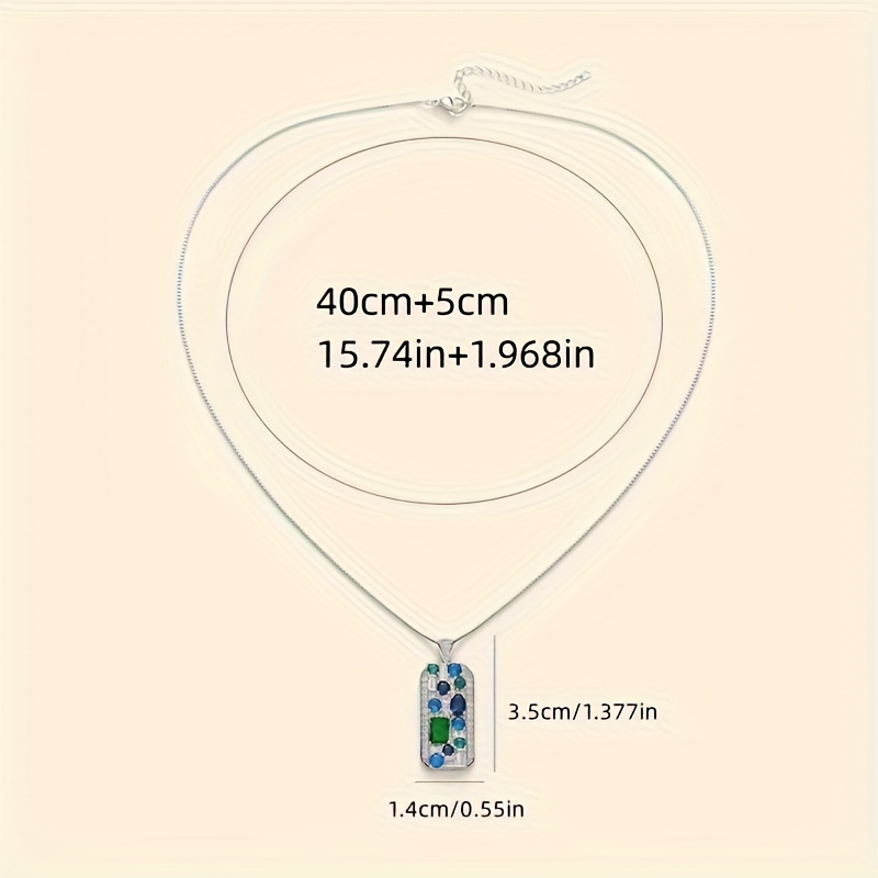 Elegant square pendant necklace with synthetic sapphire and jadeite - ladies luxury copper for parties and everyday glamour