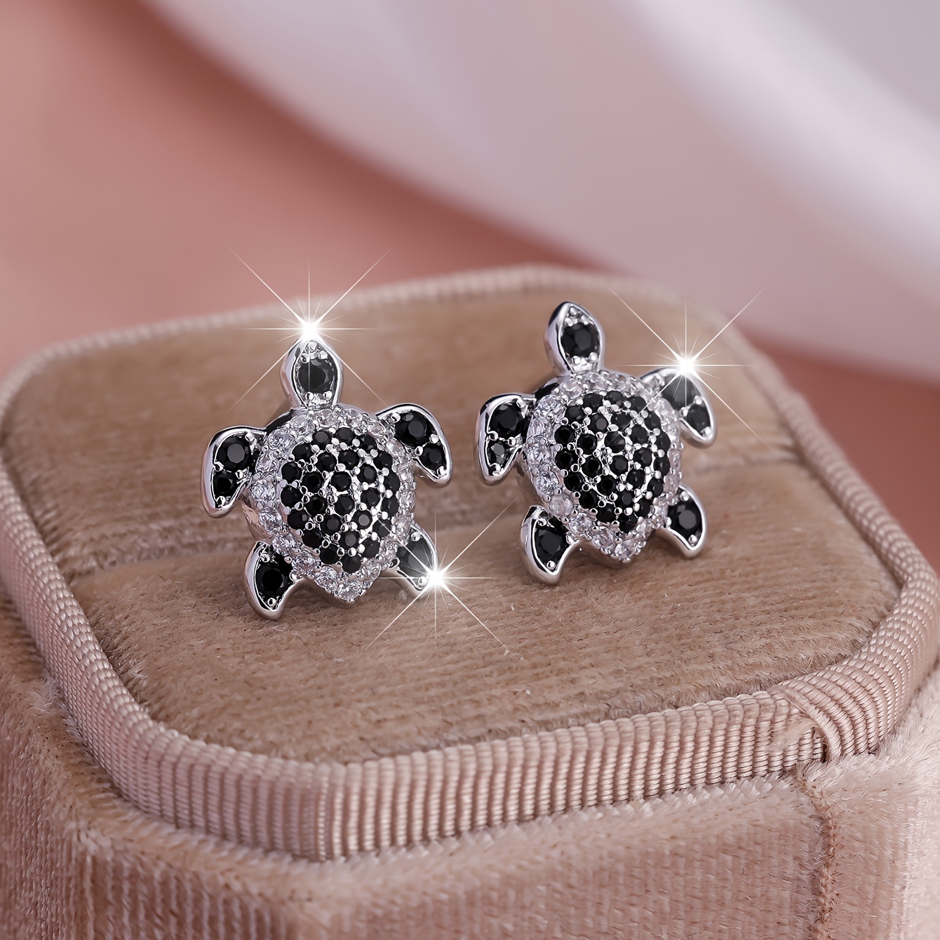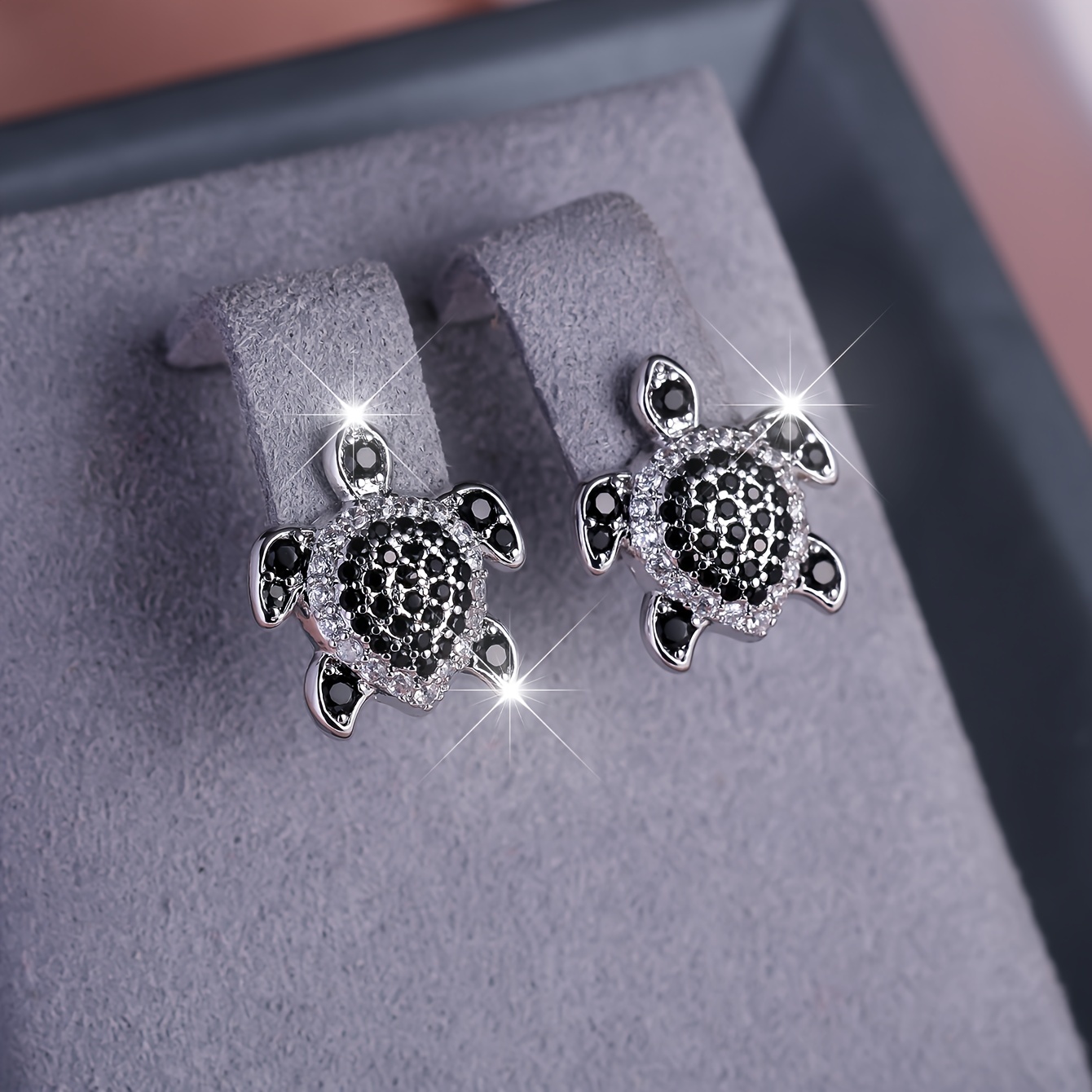 Elegant tortoise earrings adorned with black and white Zirconia, perfect for grand parties and events