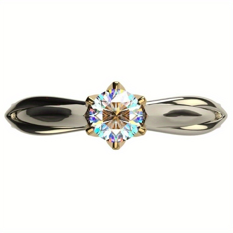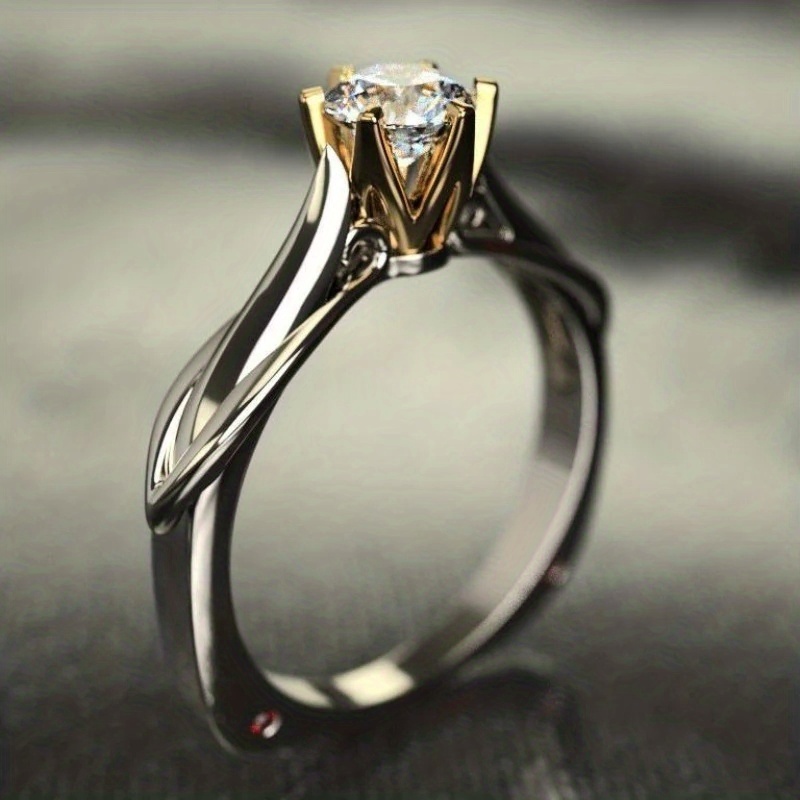 Elegant Two Tone 925 Silver Plated Gold Claw Zirconia Single Stone Lady Ring - Perfect for Engagements and Weddings, April Birthstone, All Seasons
