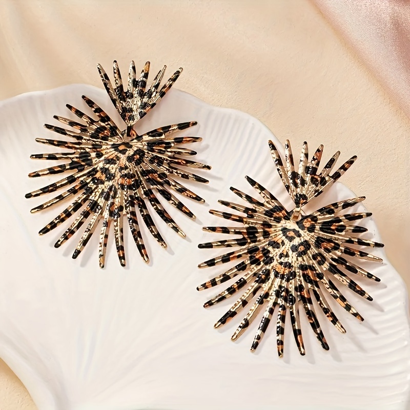 Elegant Vintage Leopard Fan Metal Earrings - Bold Personality with Stainless Steel Studs for Casual Attire or Gift Gifts, Quirky Earrings