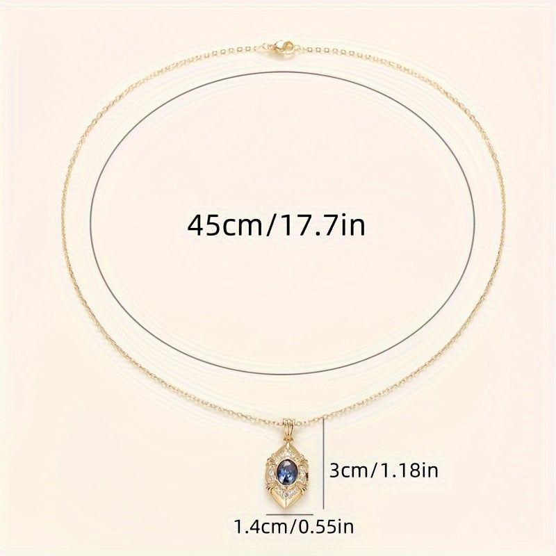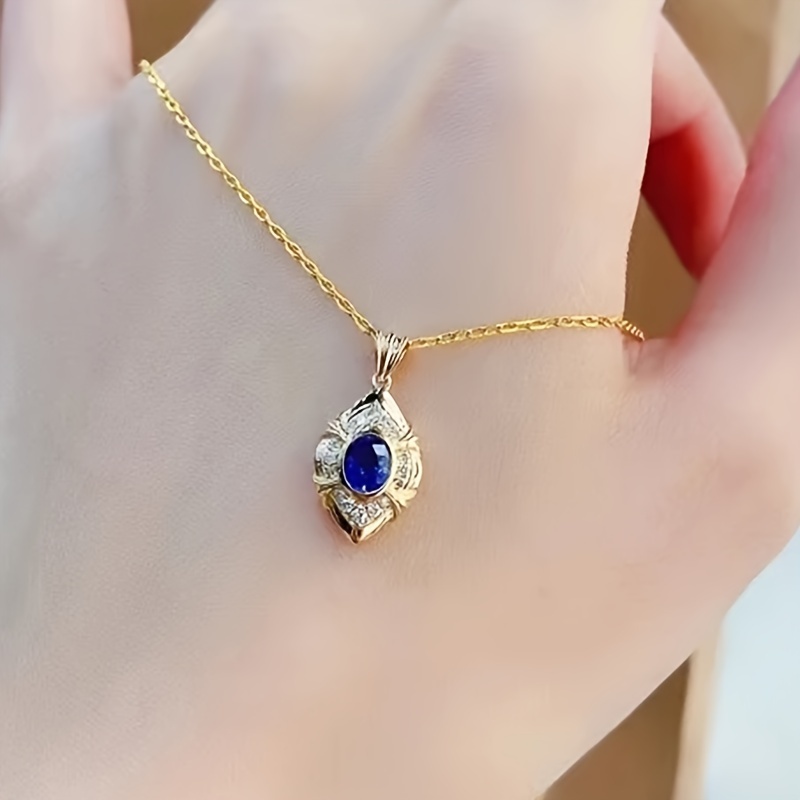 Elegant Vintage Style Blue Synthetic Gemstone Pendant Necklace Ladies, Engagement Anniversary Jewelry Gift for Lover, Vintage Elegant Design