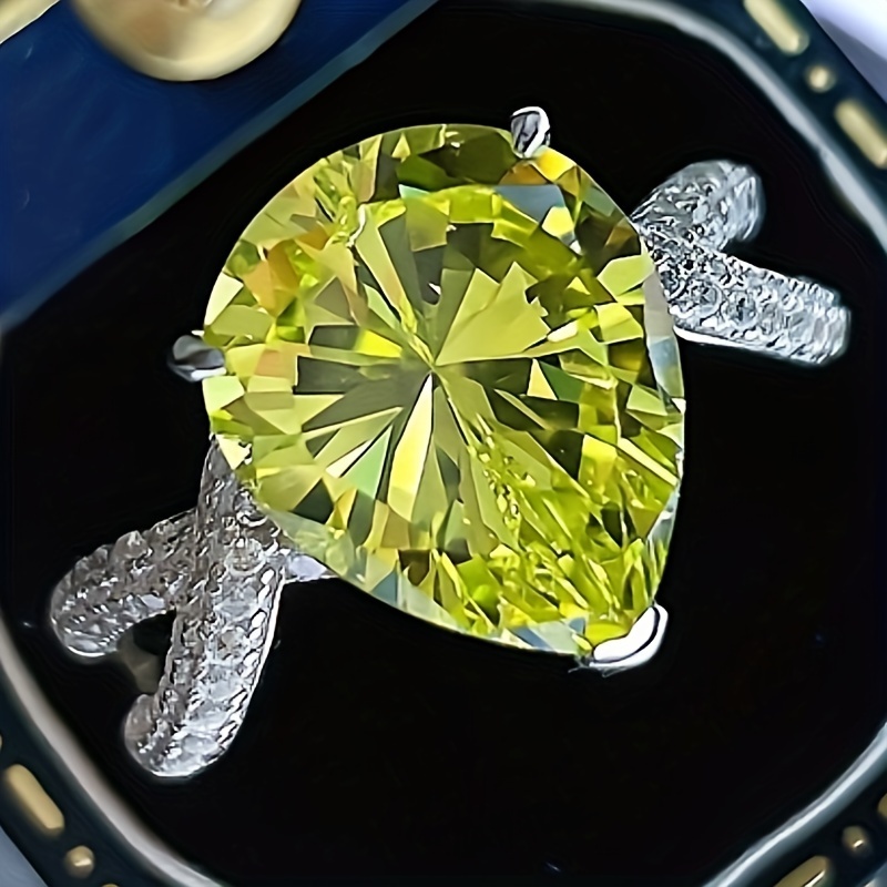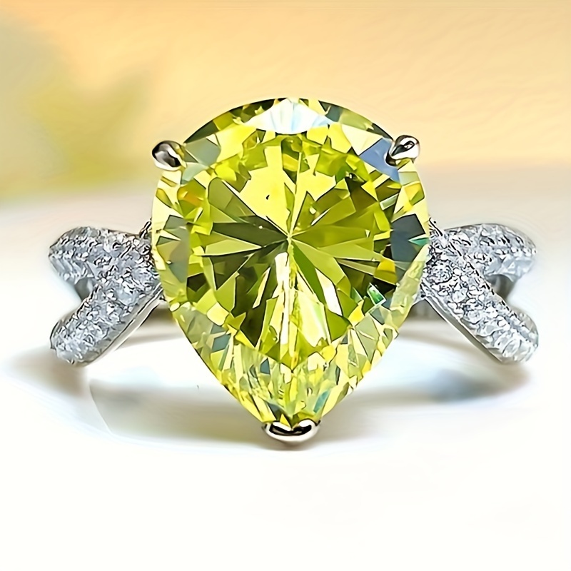 Elegant Yellow Cubic Zirconia Drop Ring - Perfect for Engagement, Wedding and Everyday Gorgeous, Party, Casual Wear