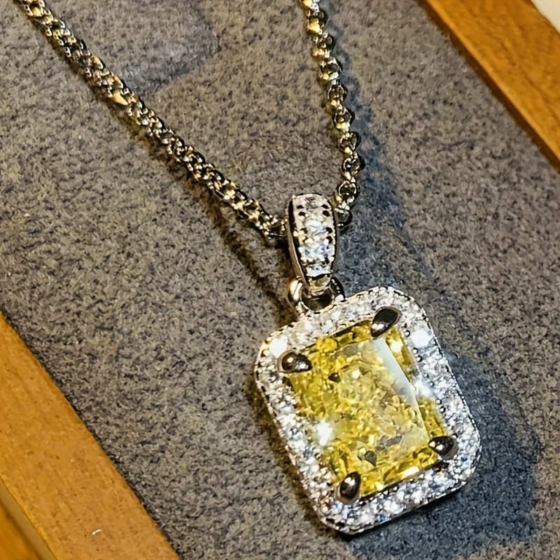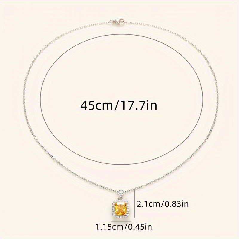 Elegant yellow rectangular synthetic gemstone pendant necklace with zircon embellishment, women's daily casual vacation jewelry, suitable for sweet dates, birthday gifts