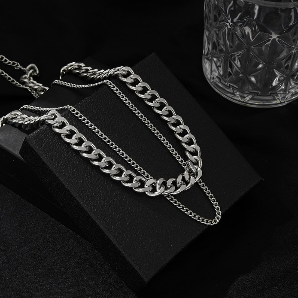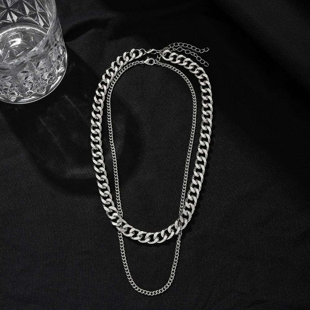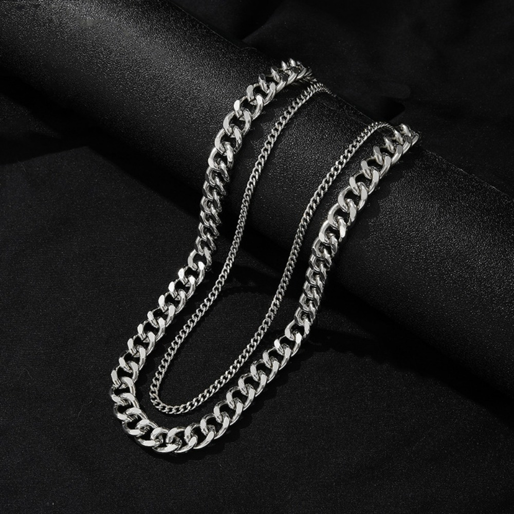 European and American cross-border new combination necklace foreign trade, fashionable and simple Cuban chain 2-piece necklace stacked and worn factory direct sales