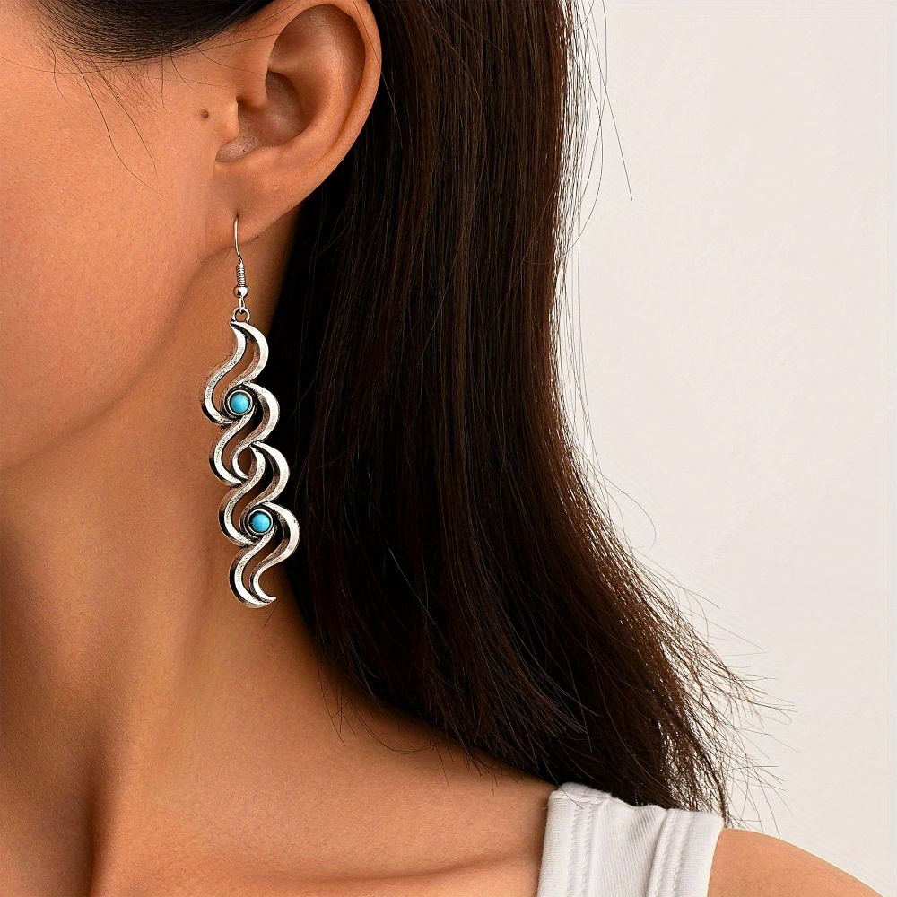European and American new foreign trade fashion earrings, retro personalized turquoise earrings, earrings, cross-border jewelry factory direct sales
