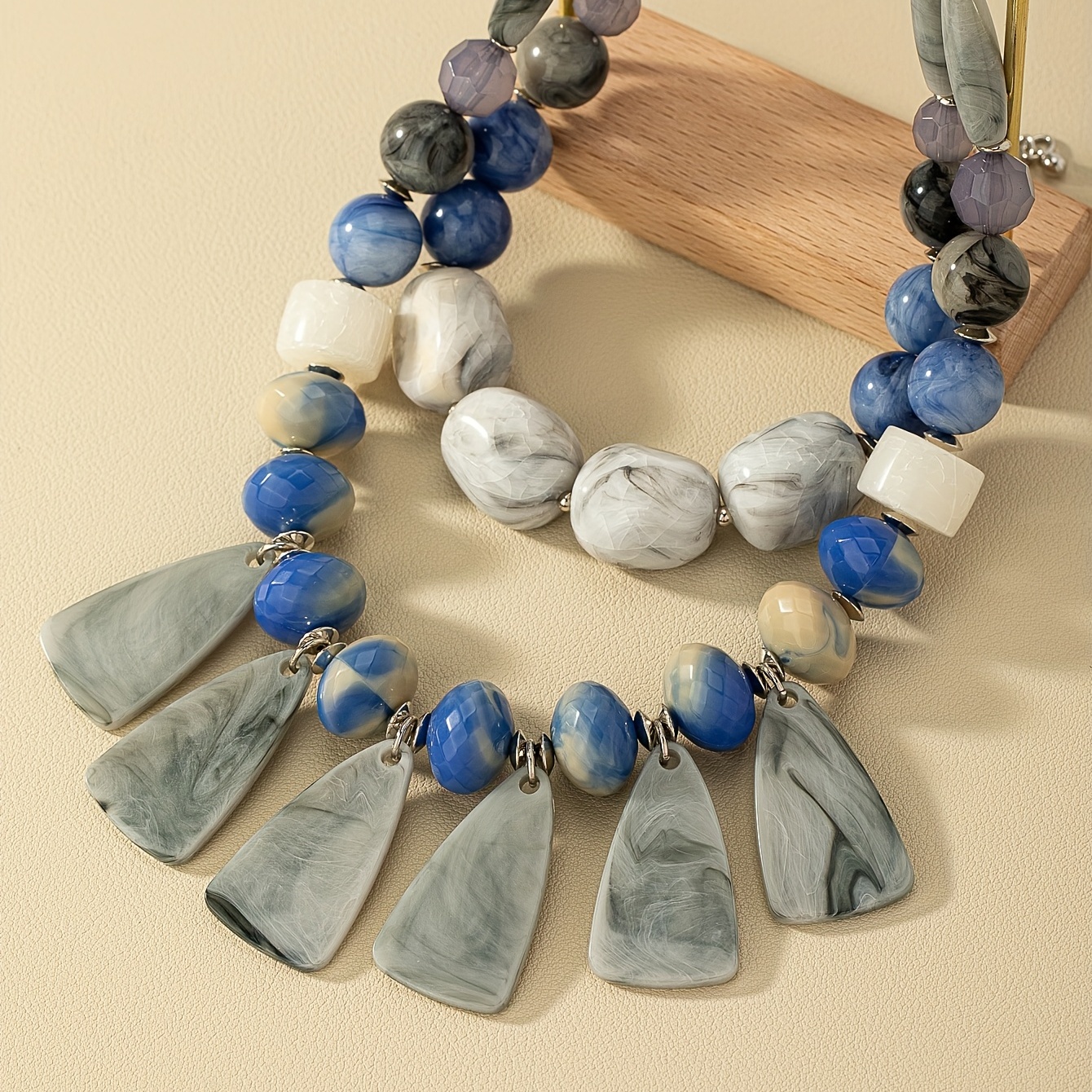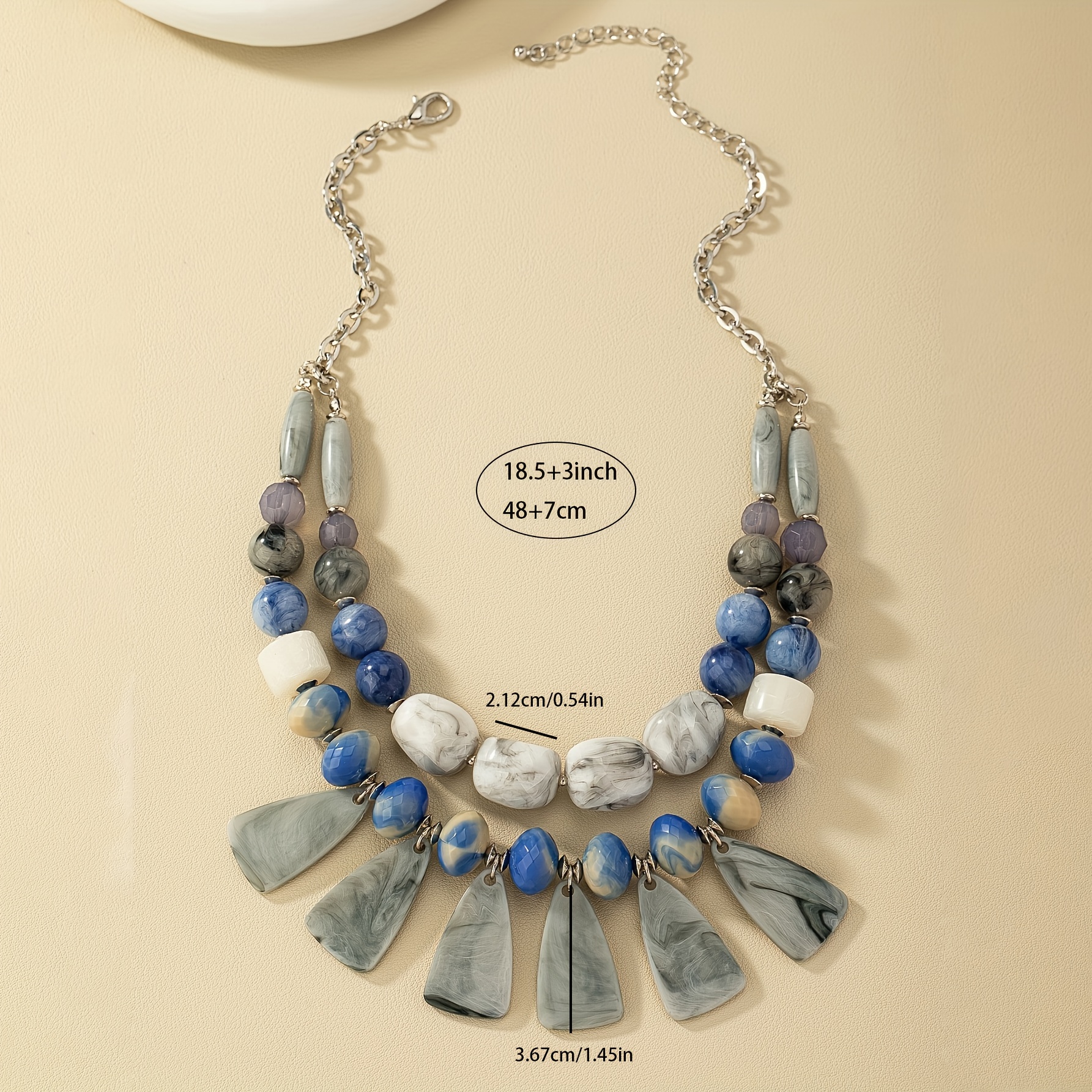 Exaggerated Beaded Bohemian Tassel Turquoise Beaded Double Necklace