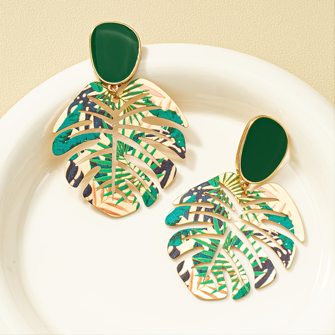Exaggerated Green Leaf Design Dangle Earrings Alloy 14K Plated Jewelry Creative Gift For Women Girls