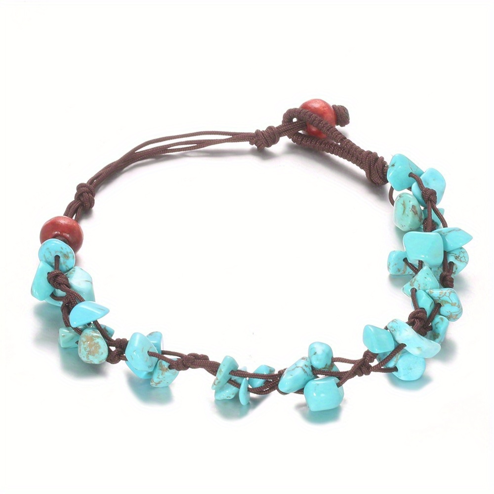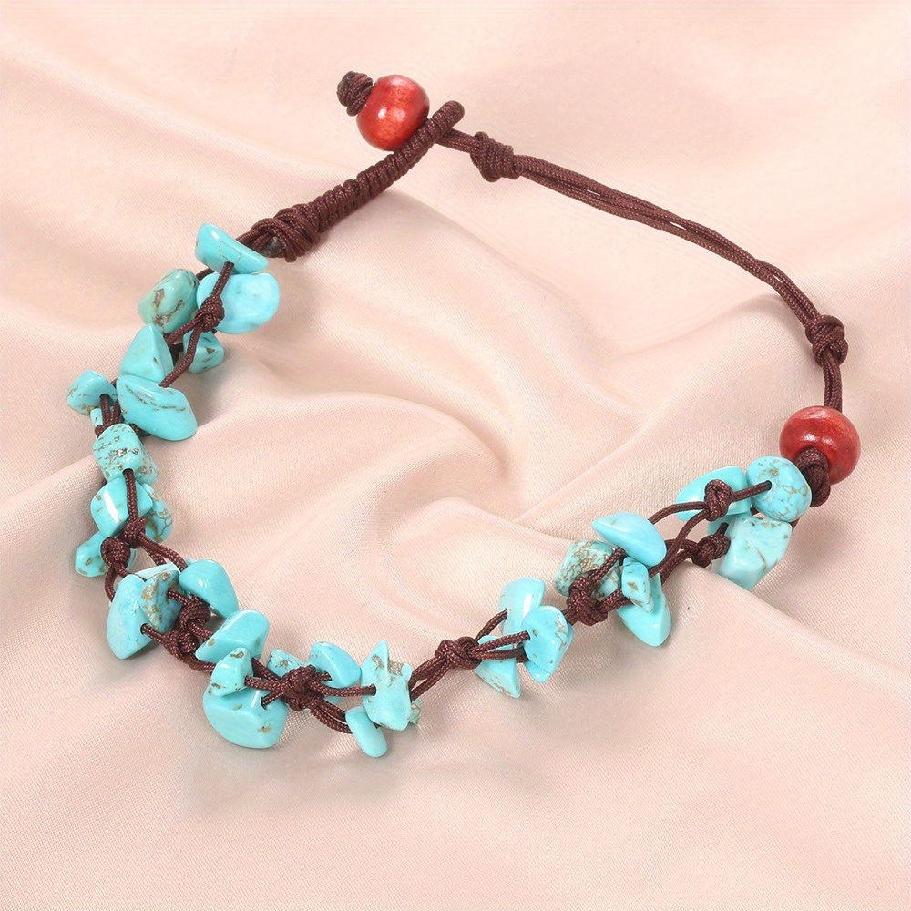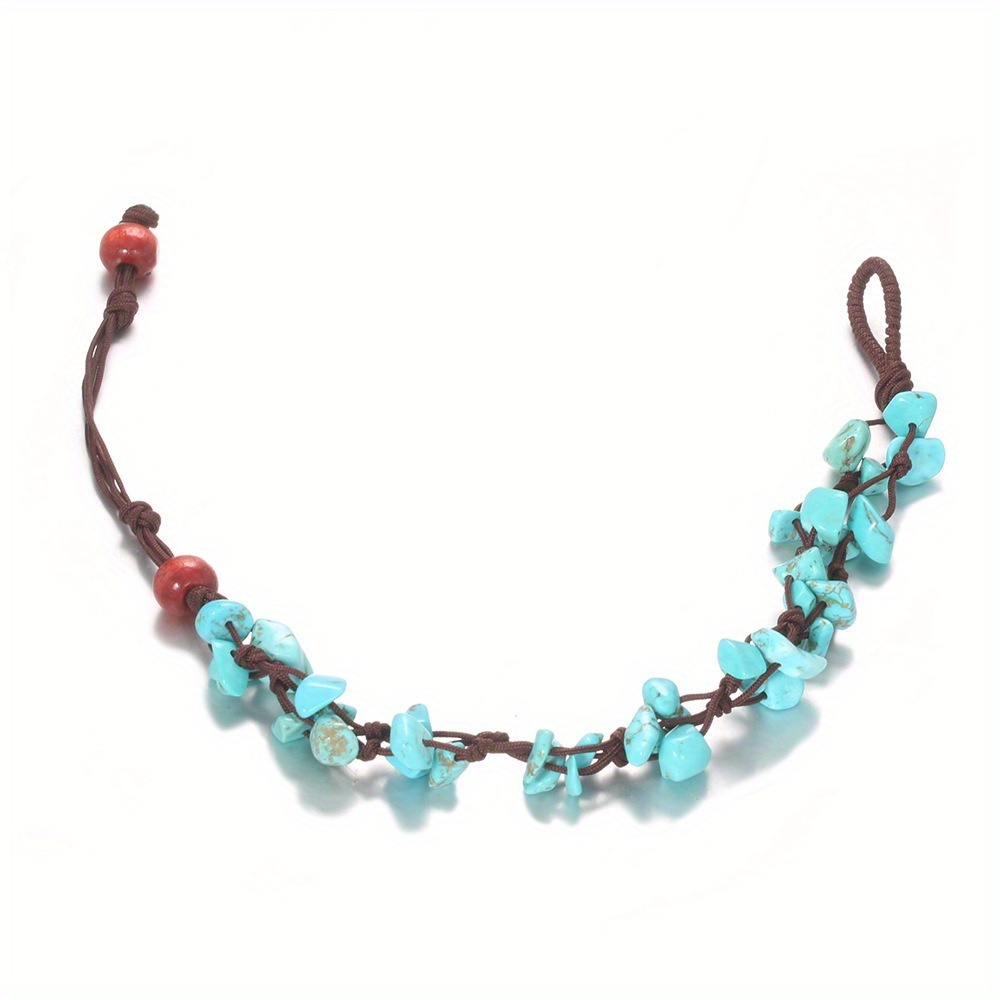 Exaggerated Personality Small Round Bead Turquoise Fringed Alloy Bracelet Anklet