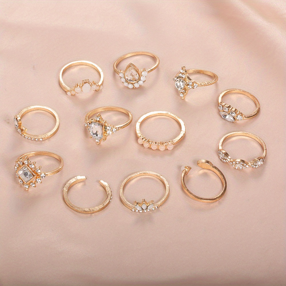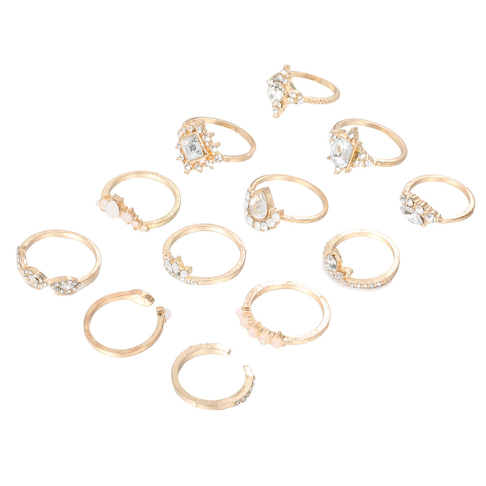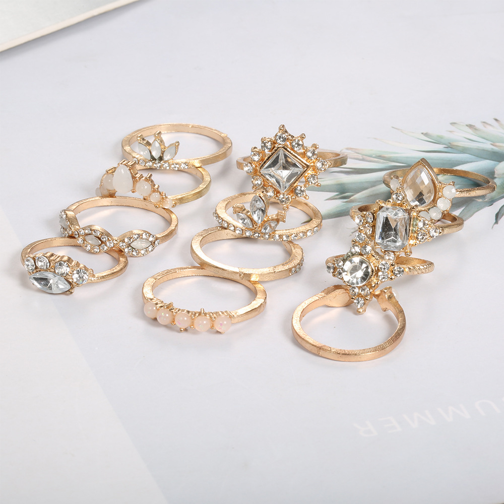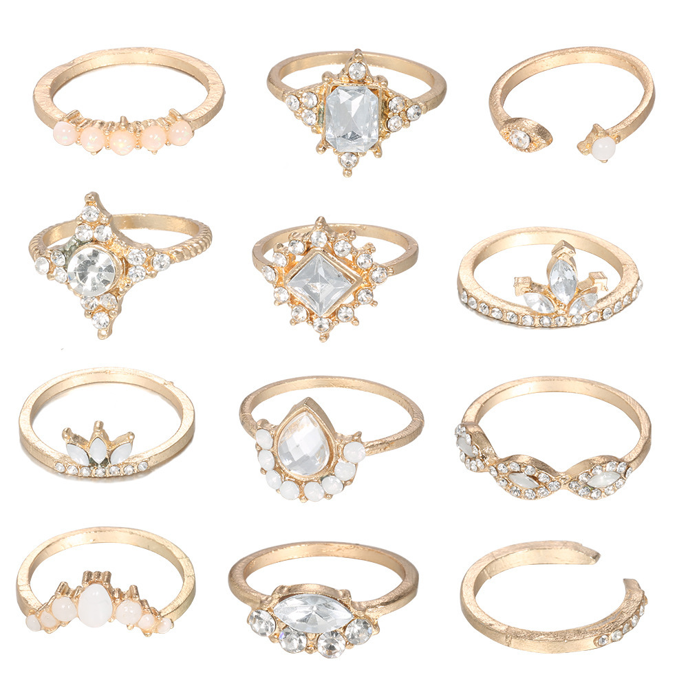 Exaggerated Ring, Retro Water Drop Diamond Ring, Twelve-piece Large Gemstone Set Ring.