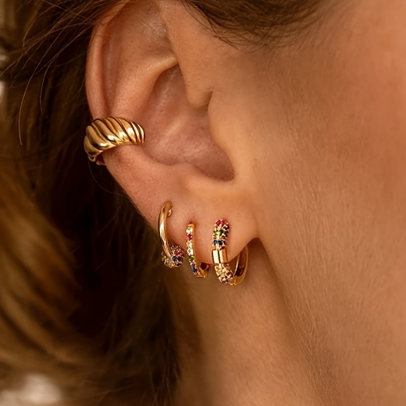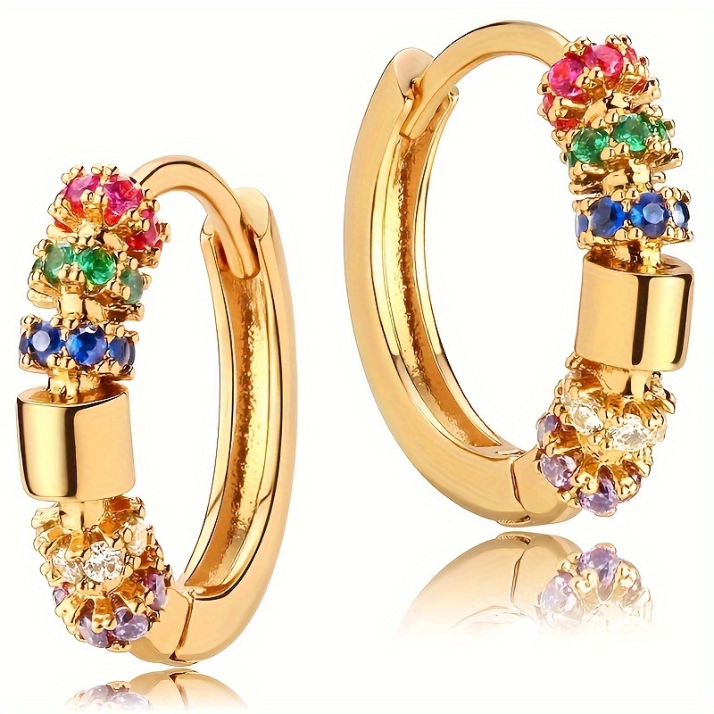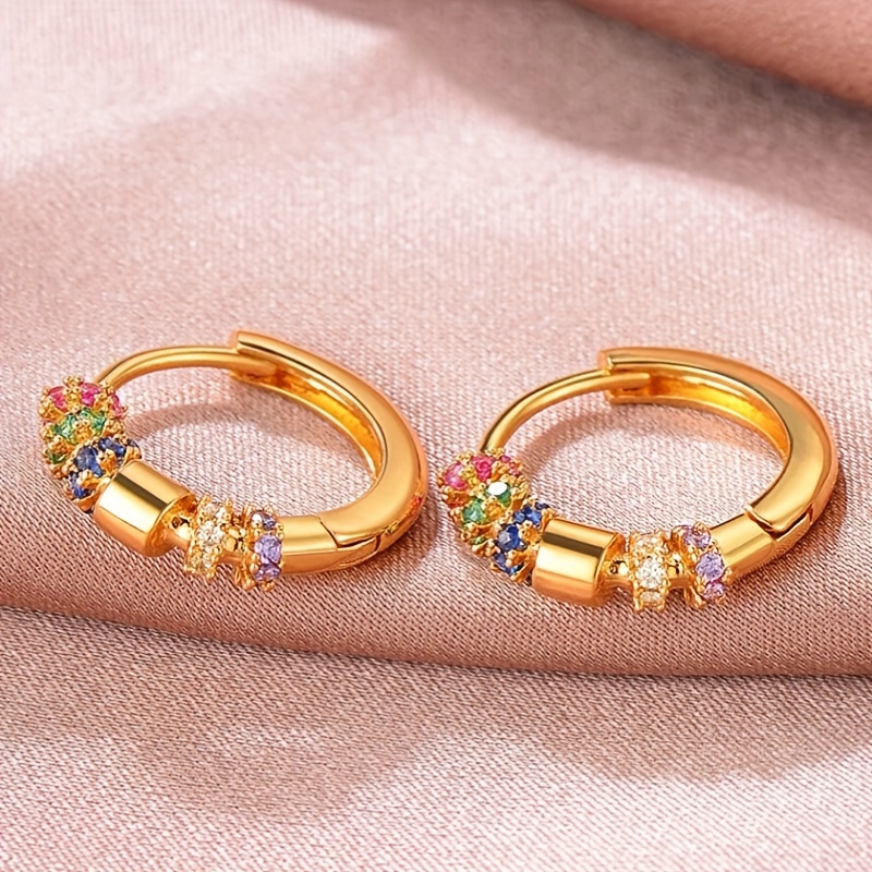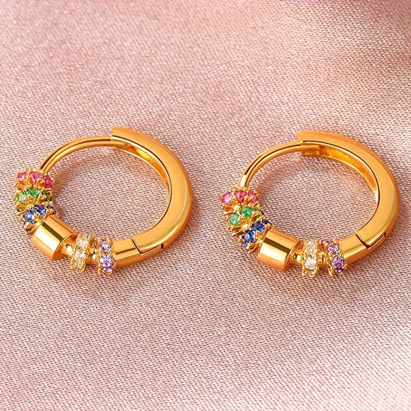 Exquisite 18K gold-plated colored gemstone ring earrings, women's daily wear fashion matching earrings