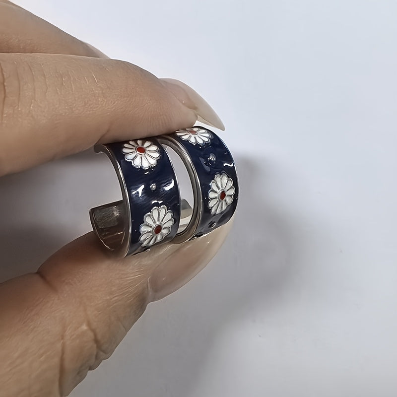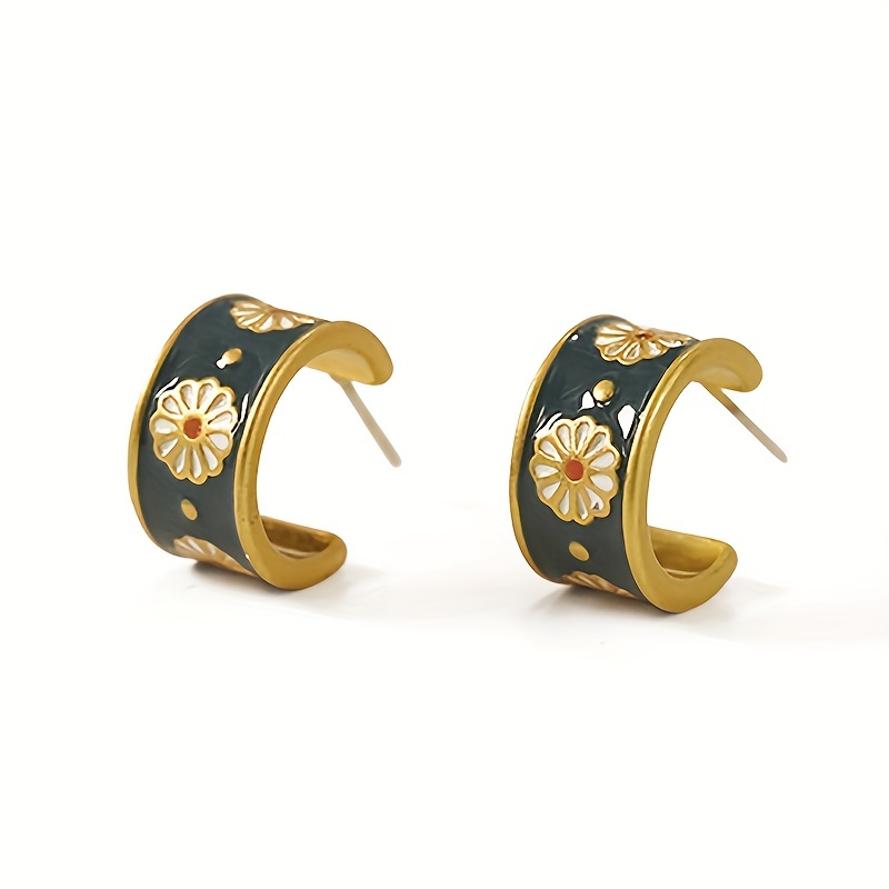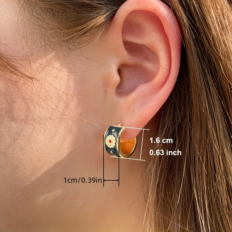 Exquisite 18K Gold Plated Flower Enamel Round Earrings Women's Wedding Engagement Party Gifts Vintage Bridal Accessories