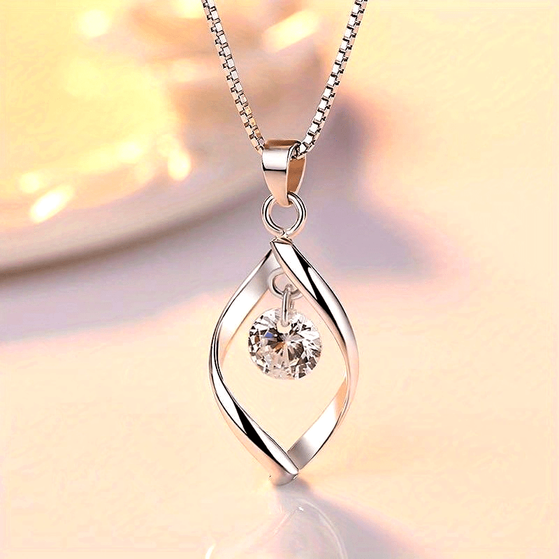Exquisite 925 Silver Plated White Rhinestone Teardrop Pendant Necklace Ladies Elegant Bride Engagement Wedding Necklace Jewelry