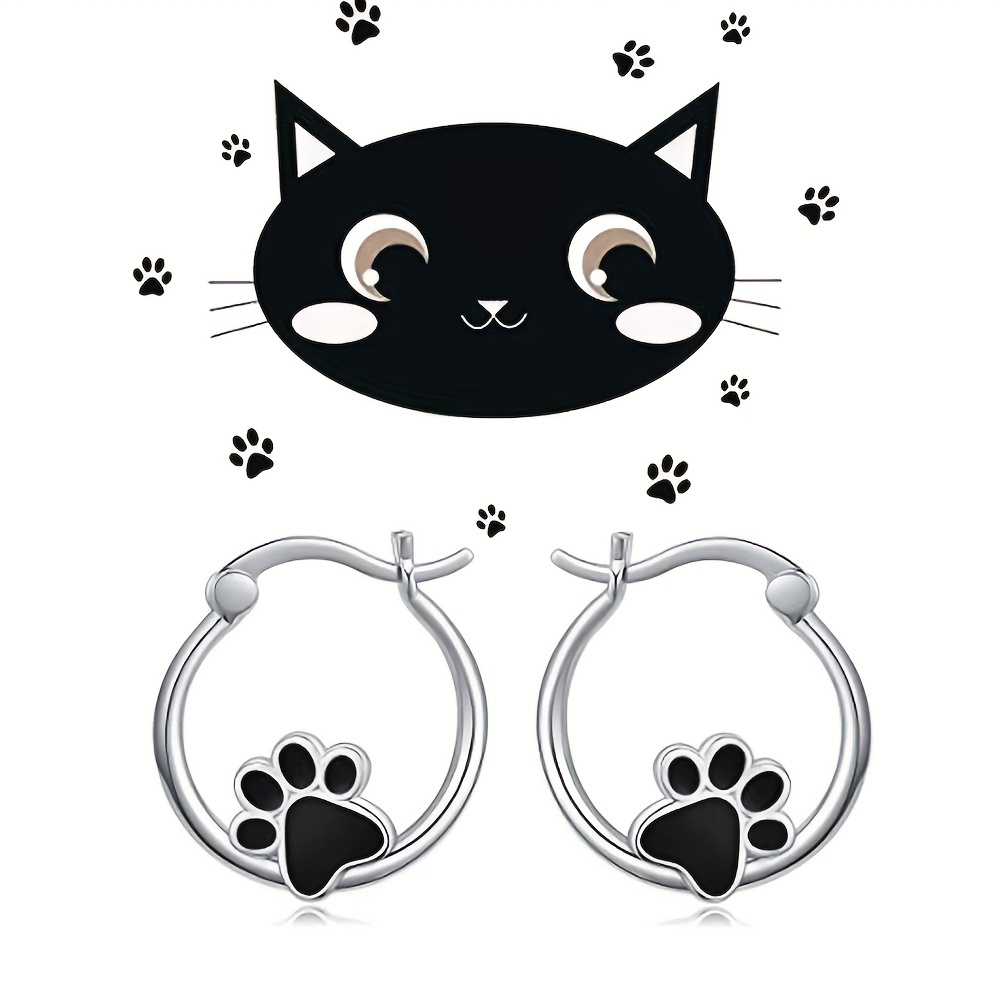 Exquisite black pet claw design earrings, cute minimalist style, copper silver plated jewelry, exquisite female gifts