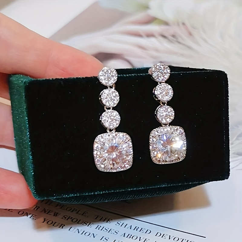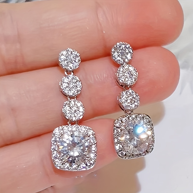 Exquisite Fashion Bridal Wedding Earrings Sparkling Stone Hanging Earrings 925 Silver Plated Earrings Jewelry