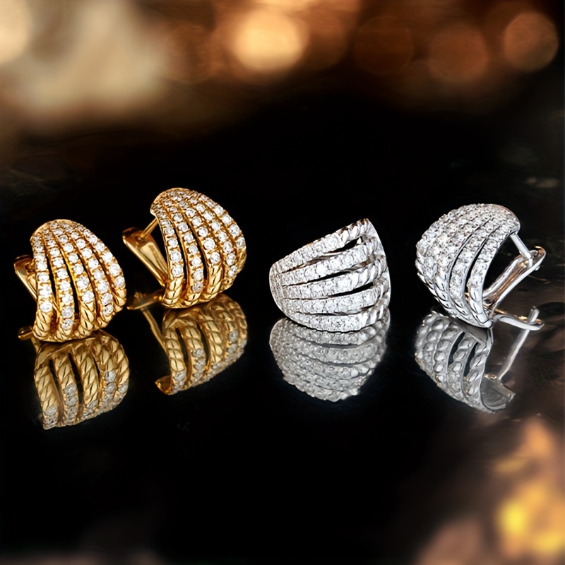 Exquisite five-claw design ring earrings, copper jewelry, zircon inlay, fashionable and luxurious style, women's daily dating earrings.