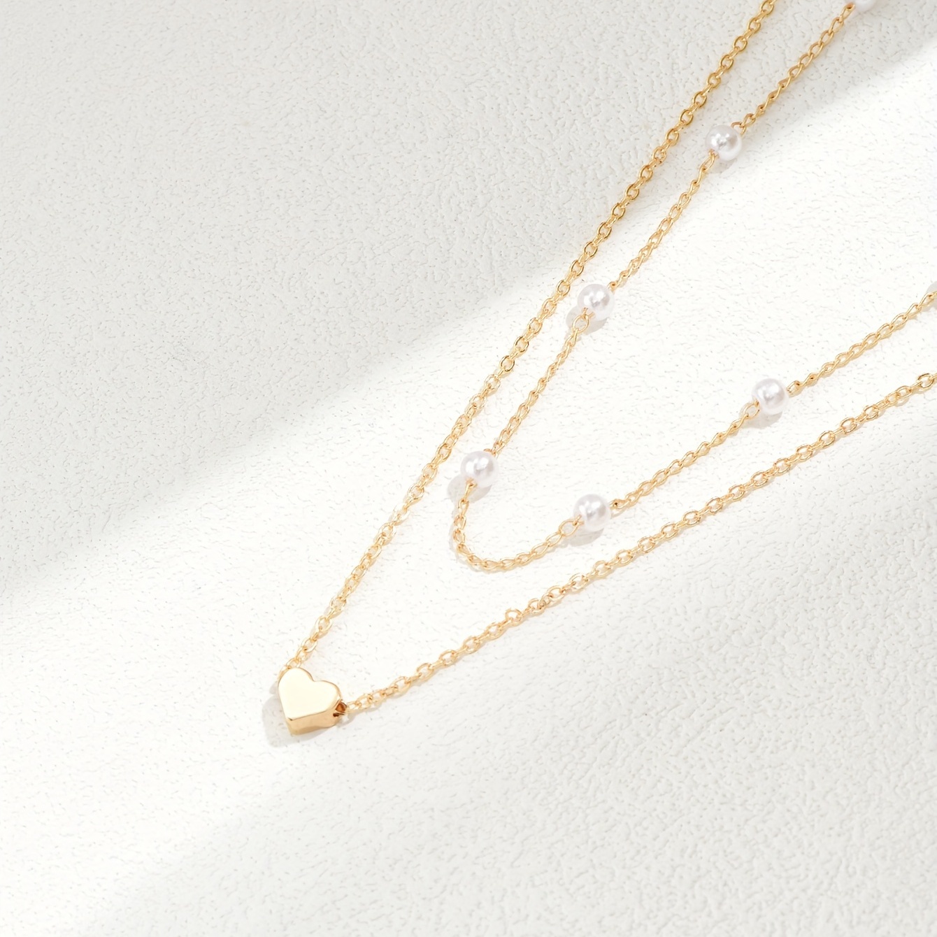 Exquisite Heart Pendant Faux Pearl Collarbone Chain Necklace Exquisite Party Jewelry Ladies (Random Faux Pearl Number)