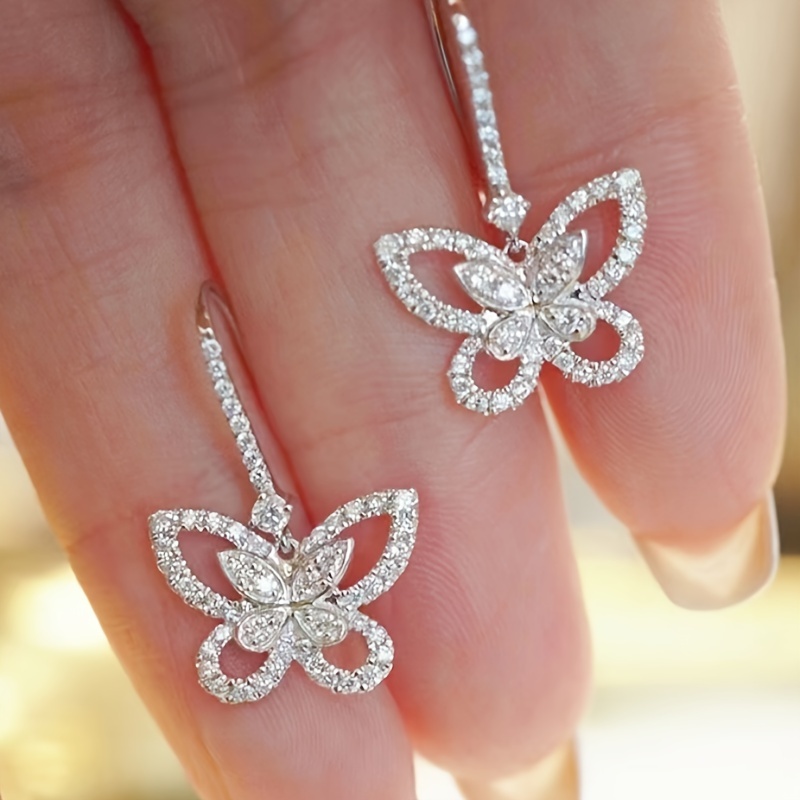 Exquisite micro-zircon butterfly hanging earrings, suitable for girls, sweet and fashionable, suitable for parties and daily wear