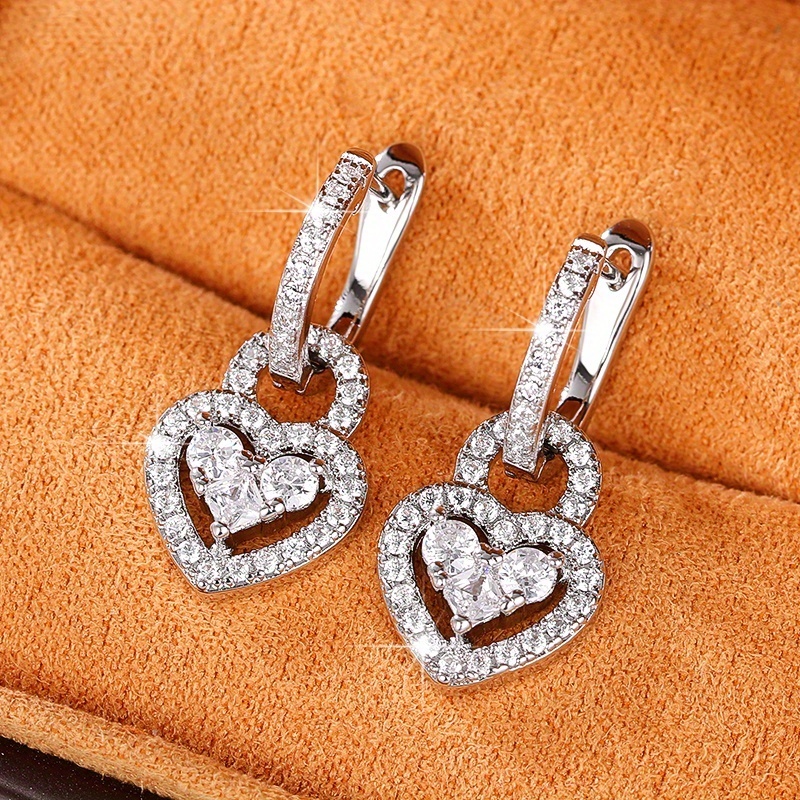 Exquisite paved zircon heart-shaped water drop earrings, daily accessories for women's parties