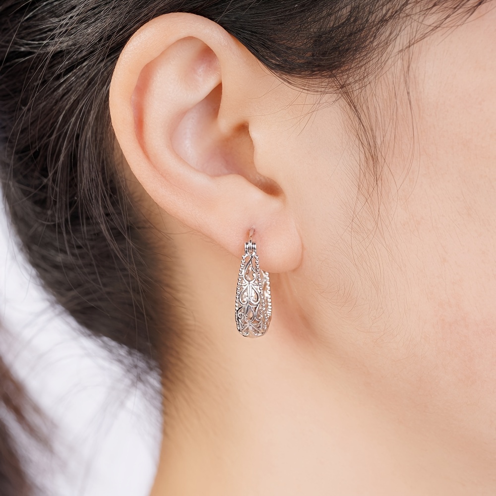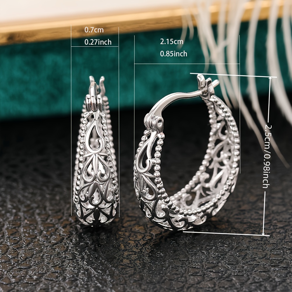 Exquisite Silver Engraved Circle Earrings Elegant Minimalist Style Copper Silver Plated Jewelry Exquisite Women's Gift