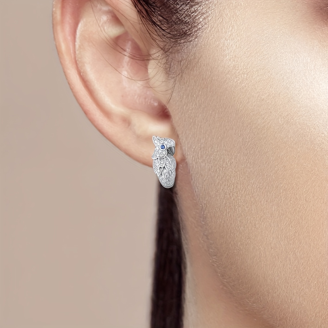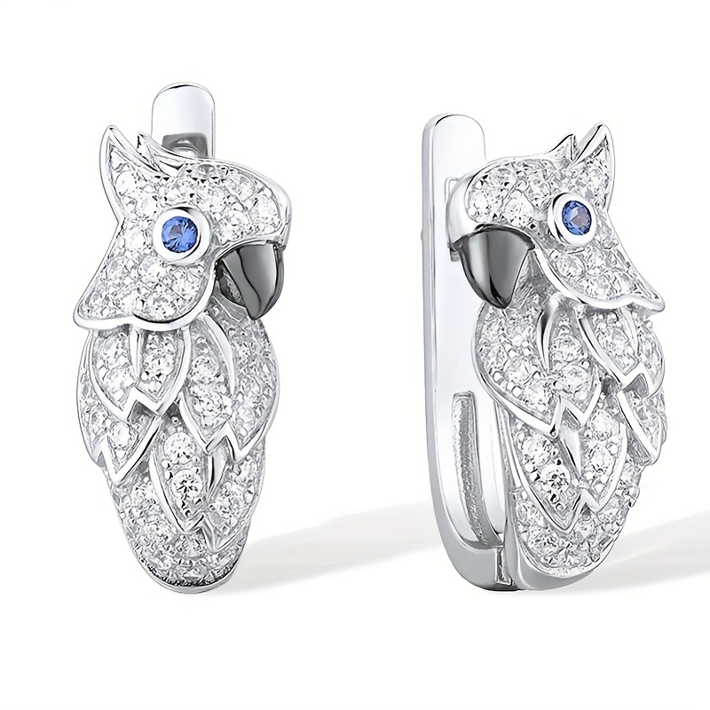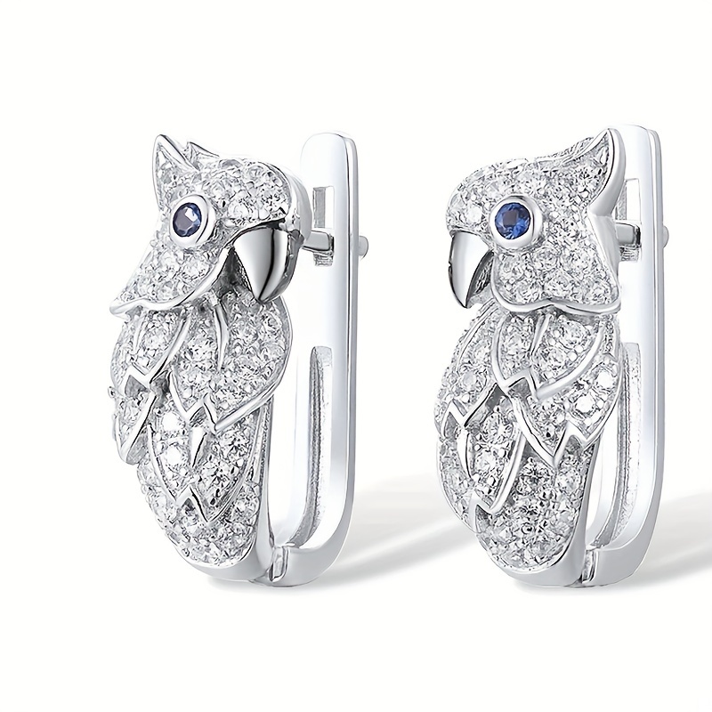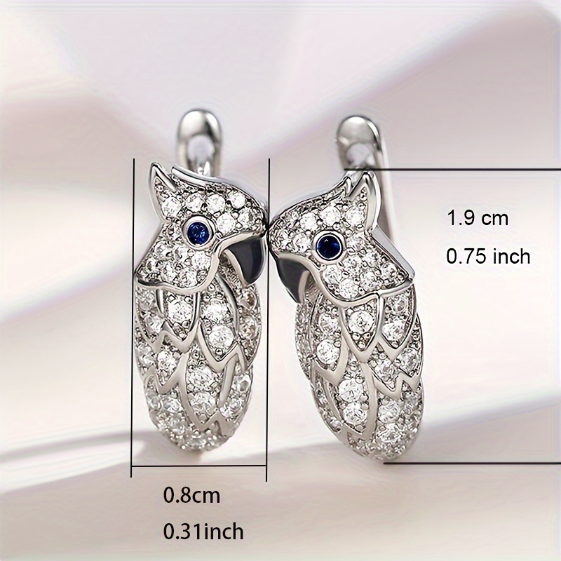 Exquisite silver parrot design, sparkling zircon decorative ring earrings, cute minimalist style, silver plated jewelry, daily leisure