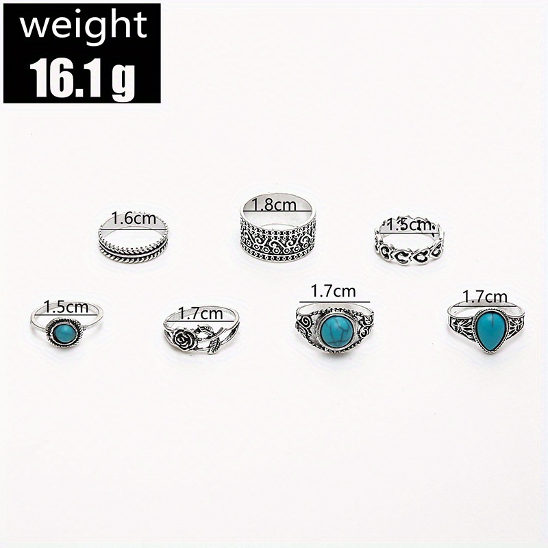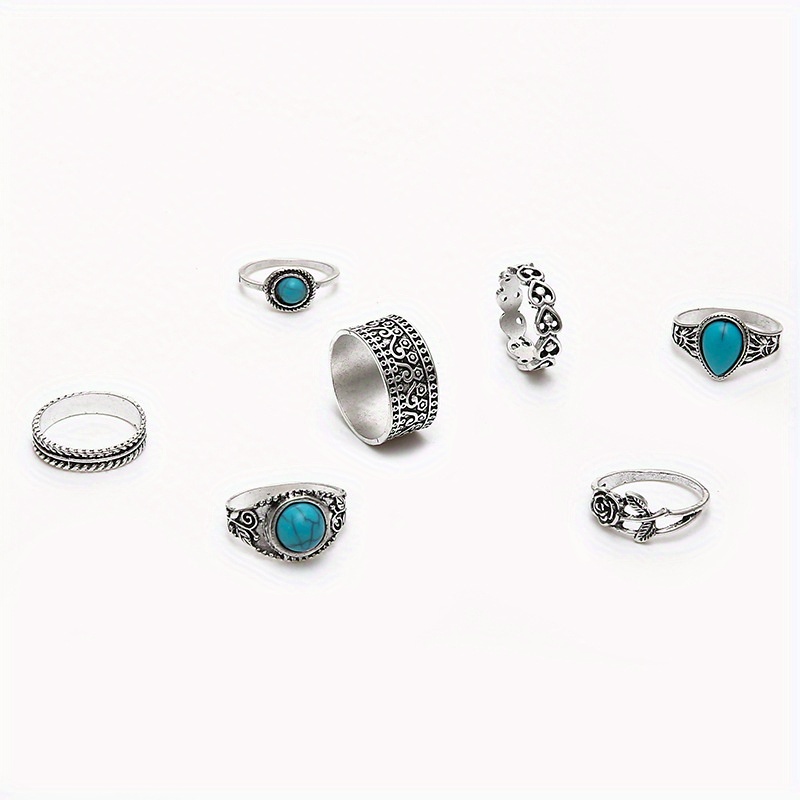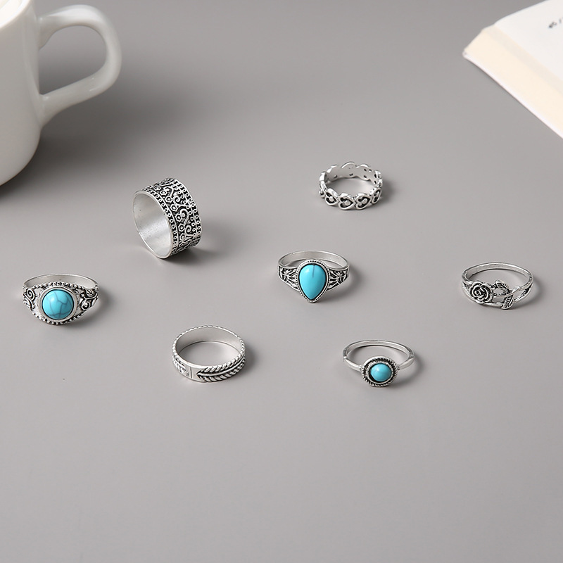 Fashion Bohemian Turquoise Rose Totem 7-piece Ring for Women