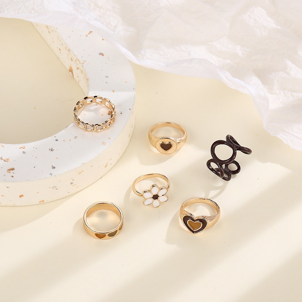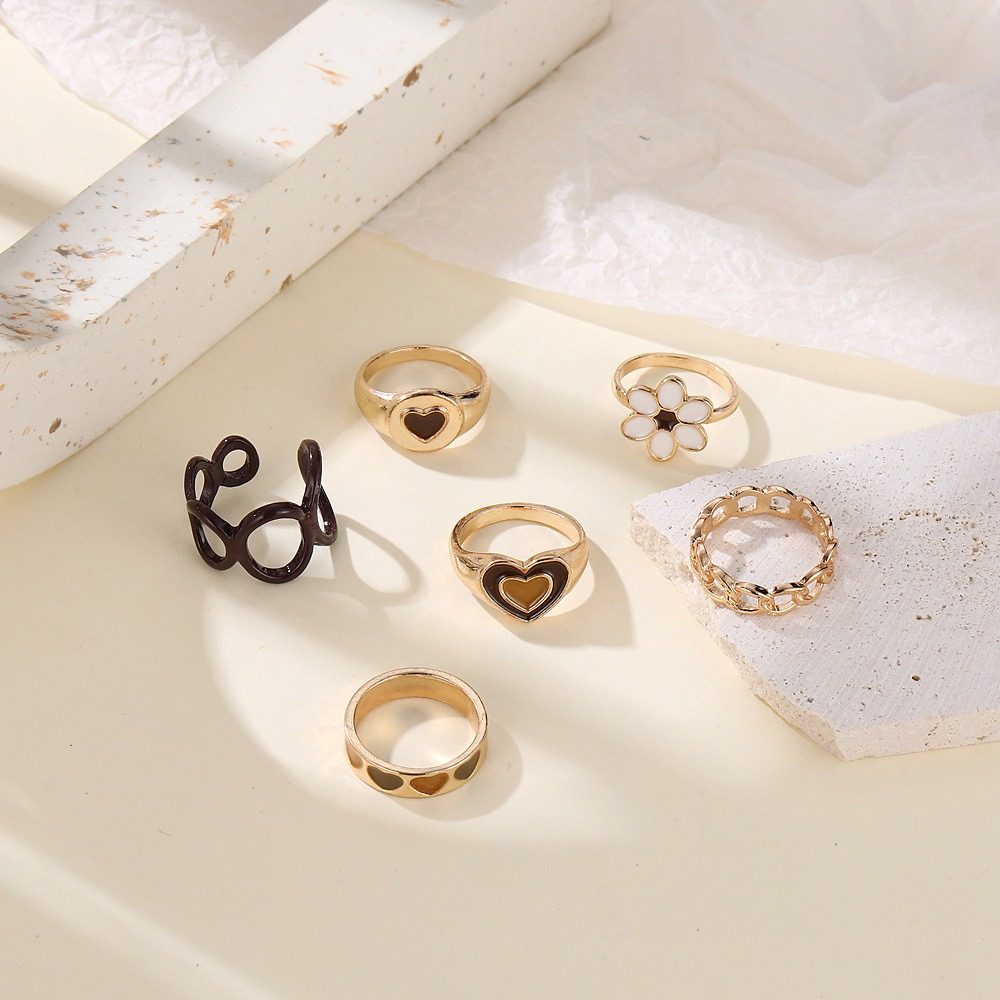 Fashion brown love drip ring six-piece set, geometric flower ring combination set