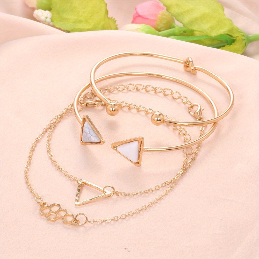 Fashion Chemical Bond Knotted, Turquoise Triangle Combination Set Bracelet.
