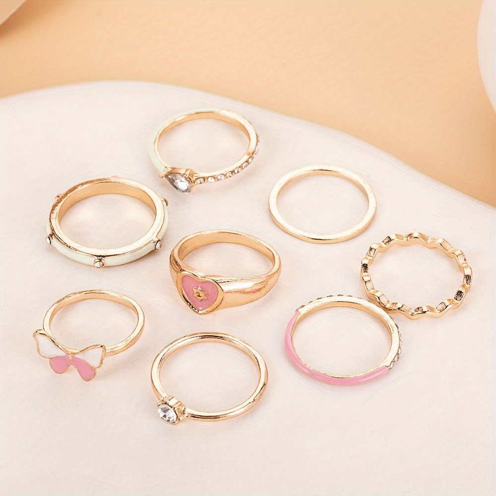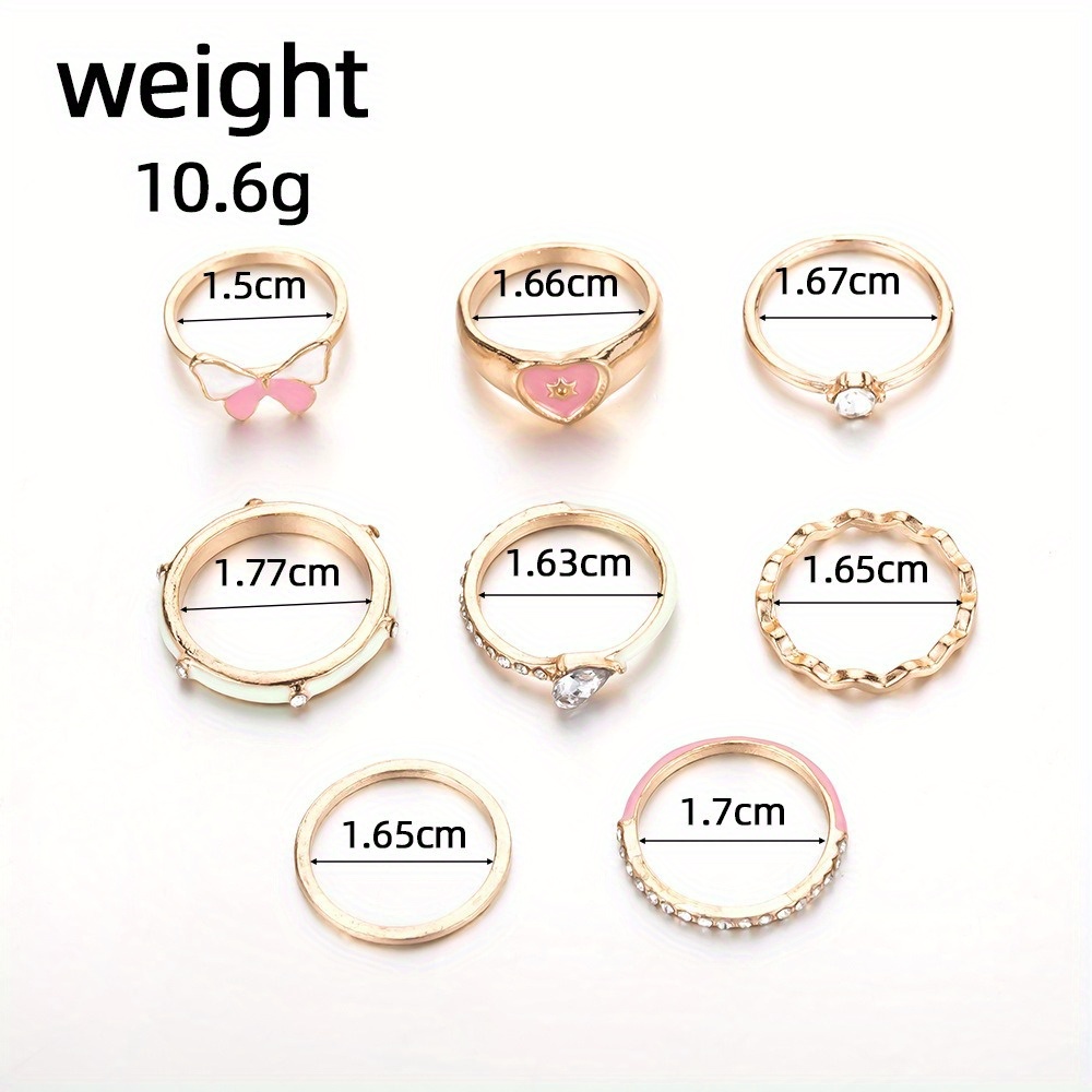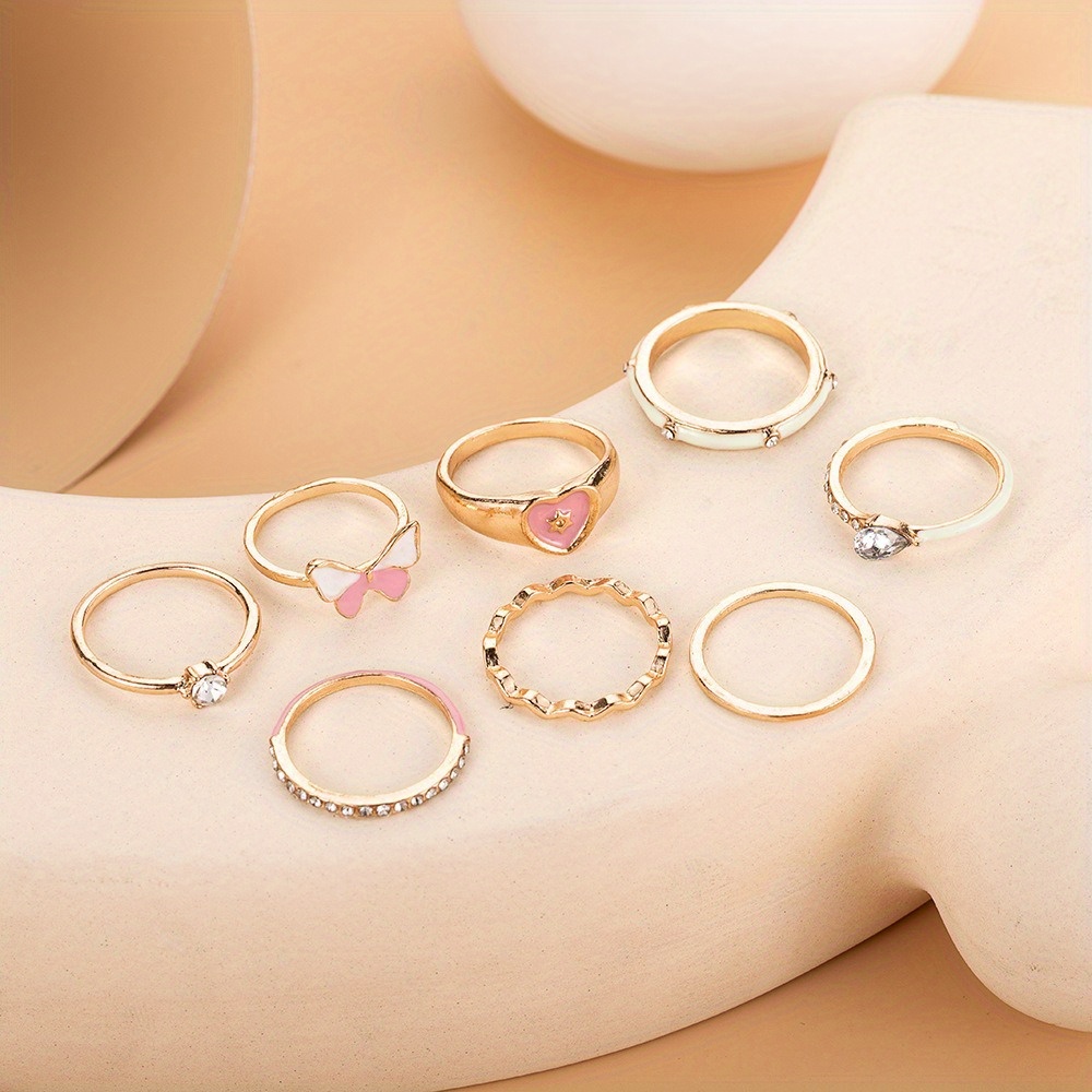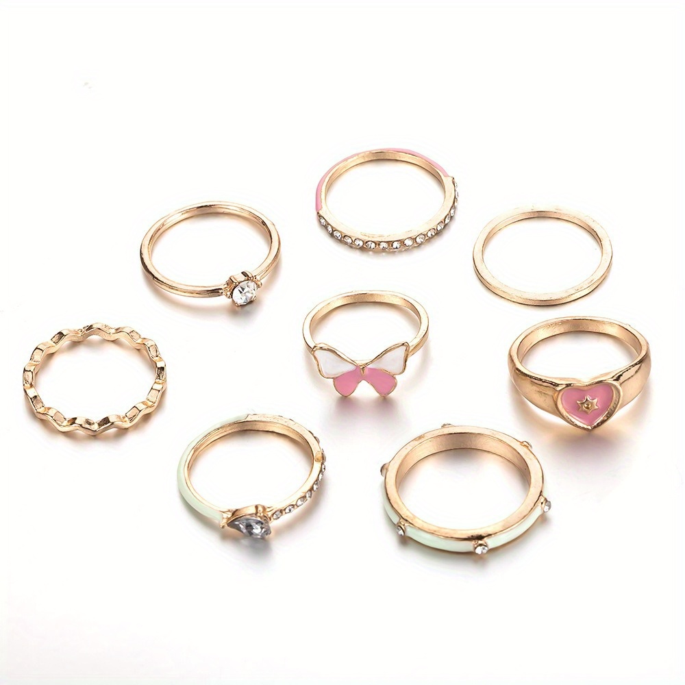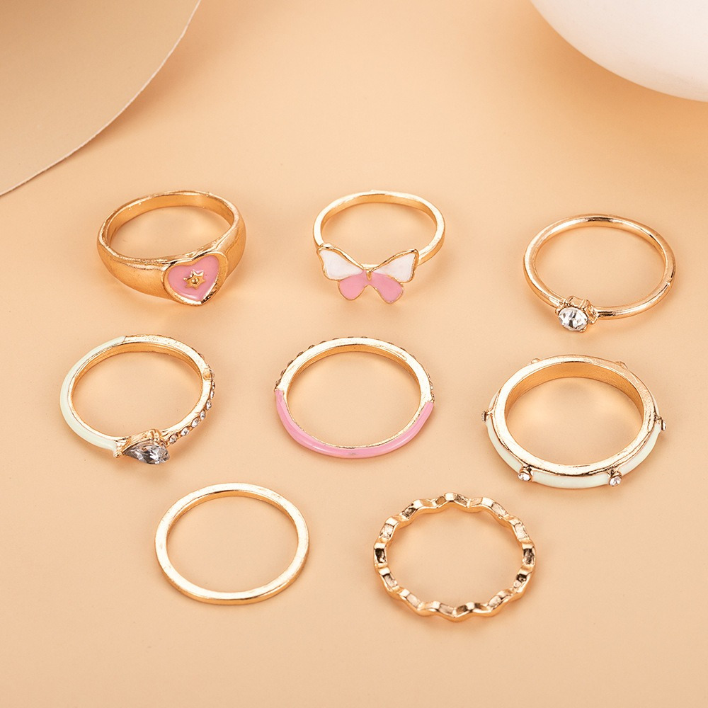 Fashion Color Dot Diamond Love Butterfly Drip Oil Eight-piece Set Ring