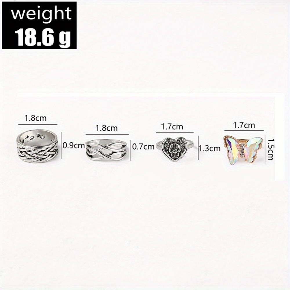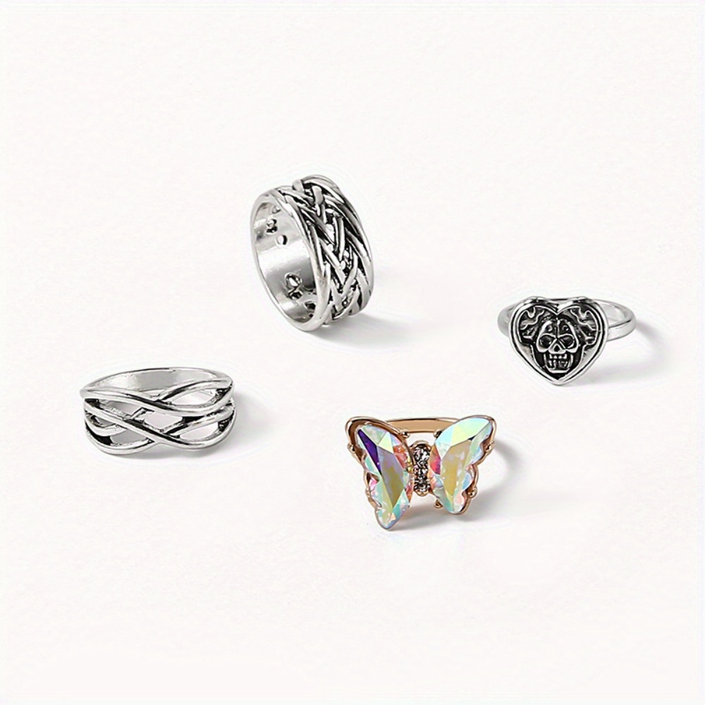 Fashion Colorful Butterfly Skull Knotted 4-piece Joint Ring Women