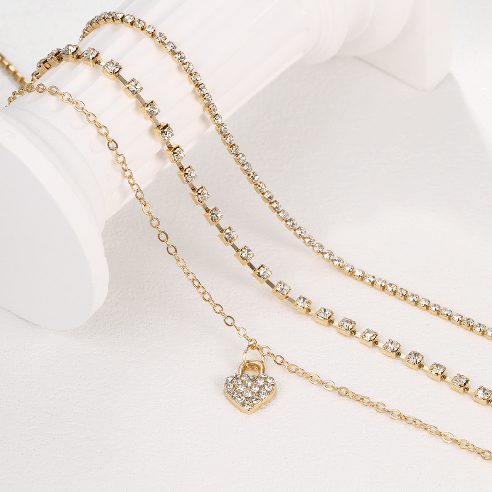 Fashion Creative Personality Point Diamond Love Zircon Anklet 3-piece Set Women's Jewelry
