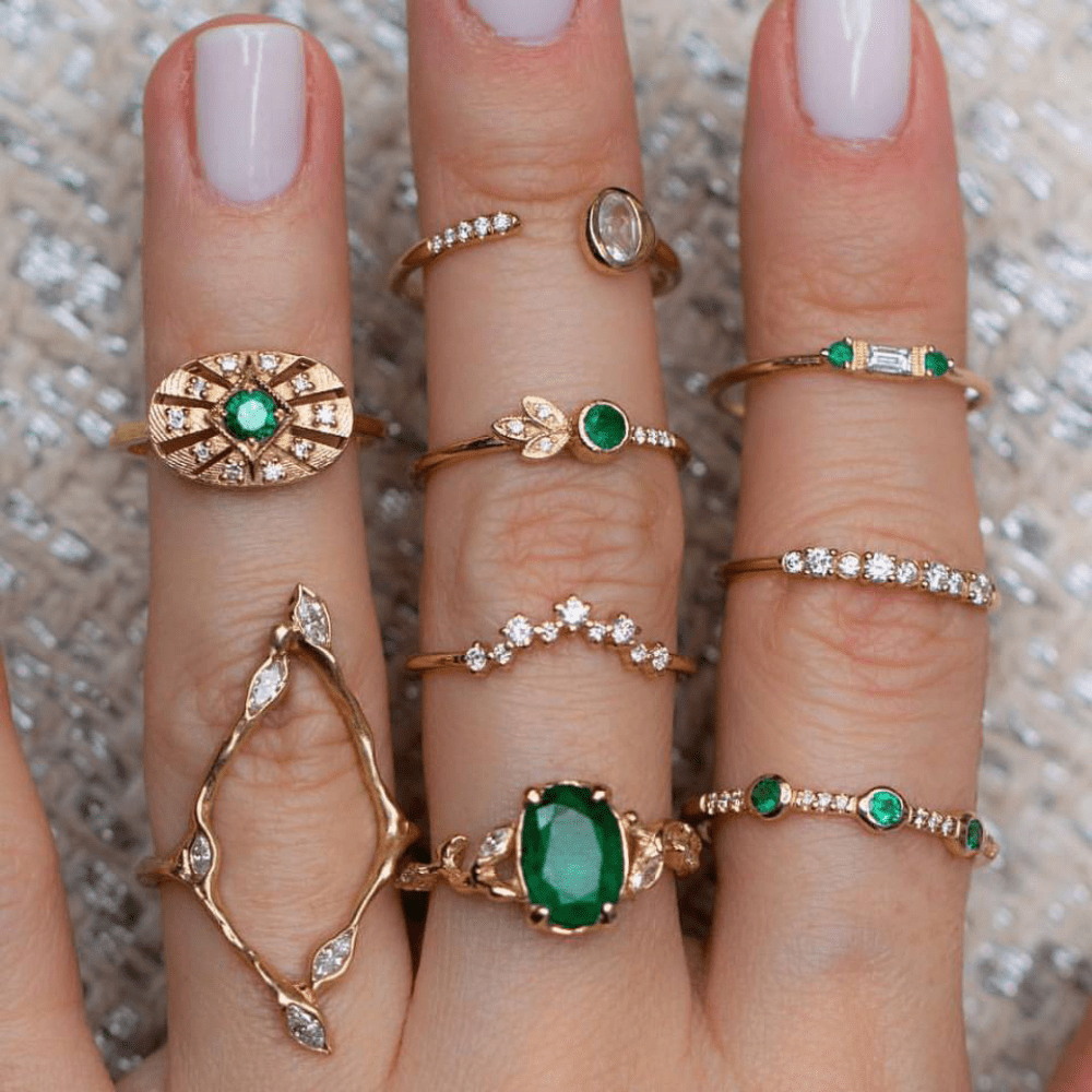 Fashion Diamond Emerald Joint Ring 9-piece Combination Set