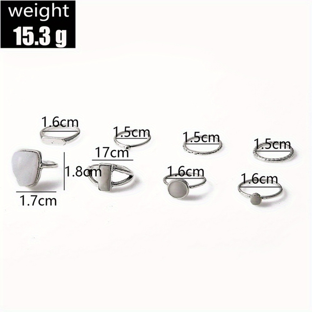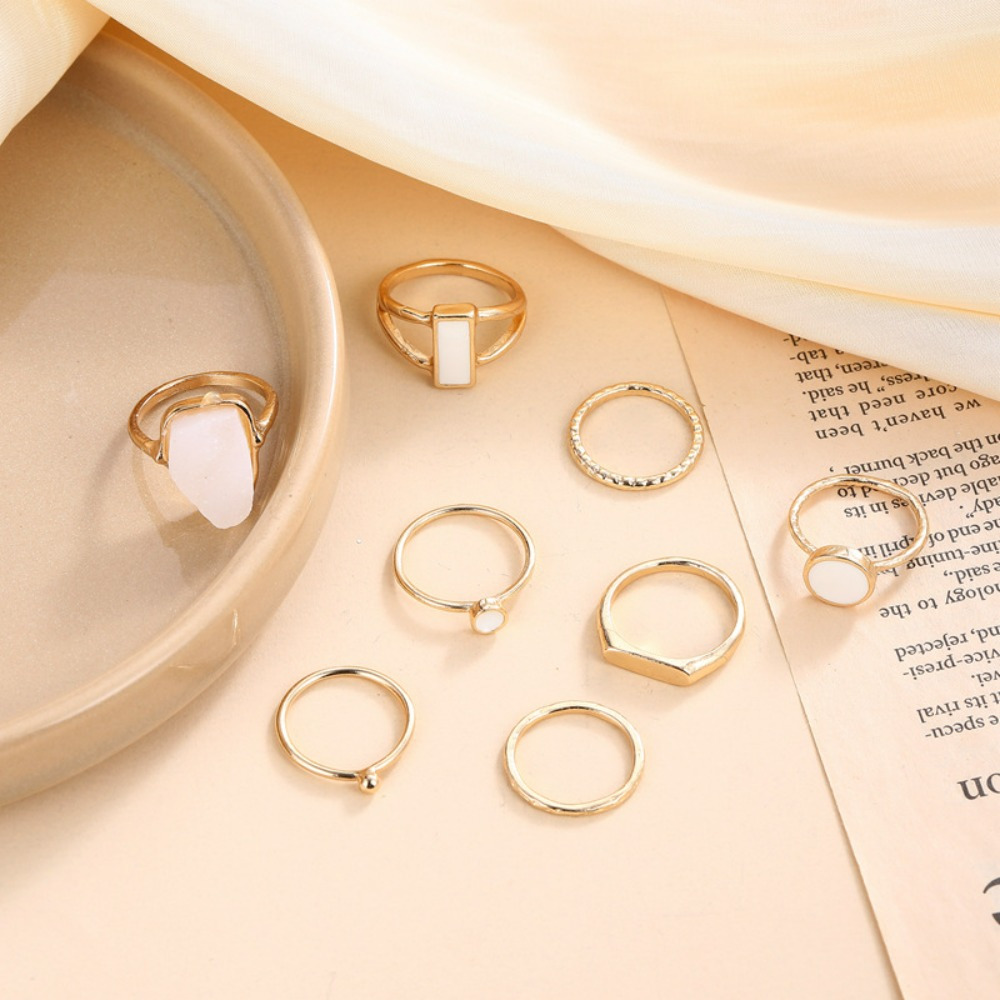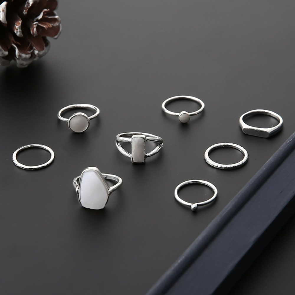 Fashion Geometric Opal Individual Cold Style Niche Design 8-piece Ring