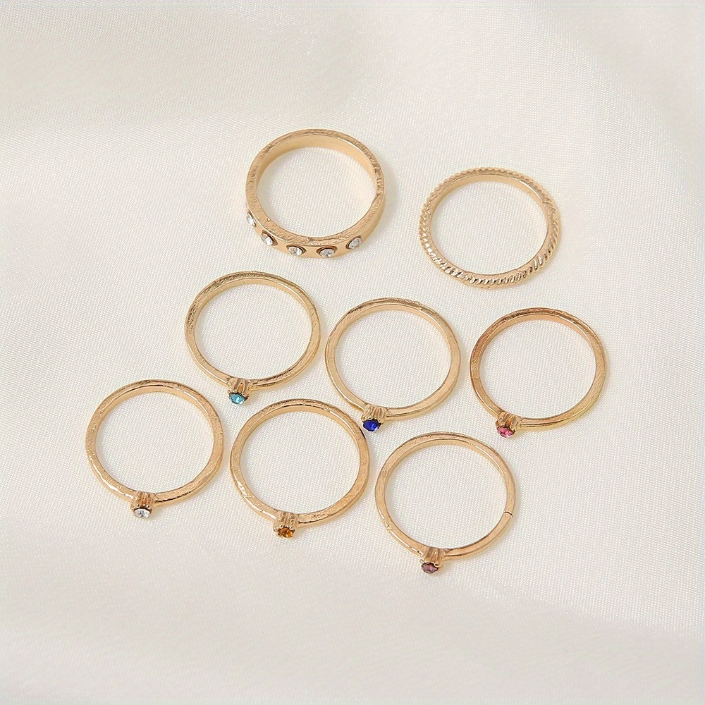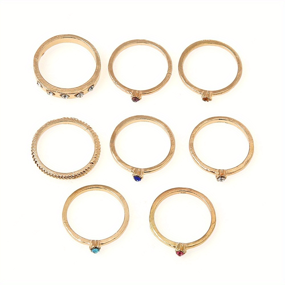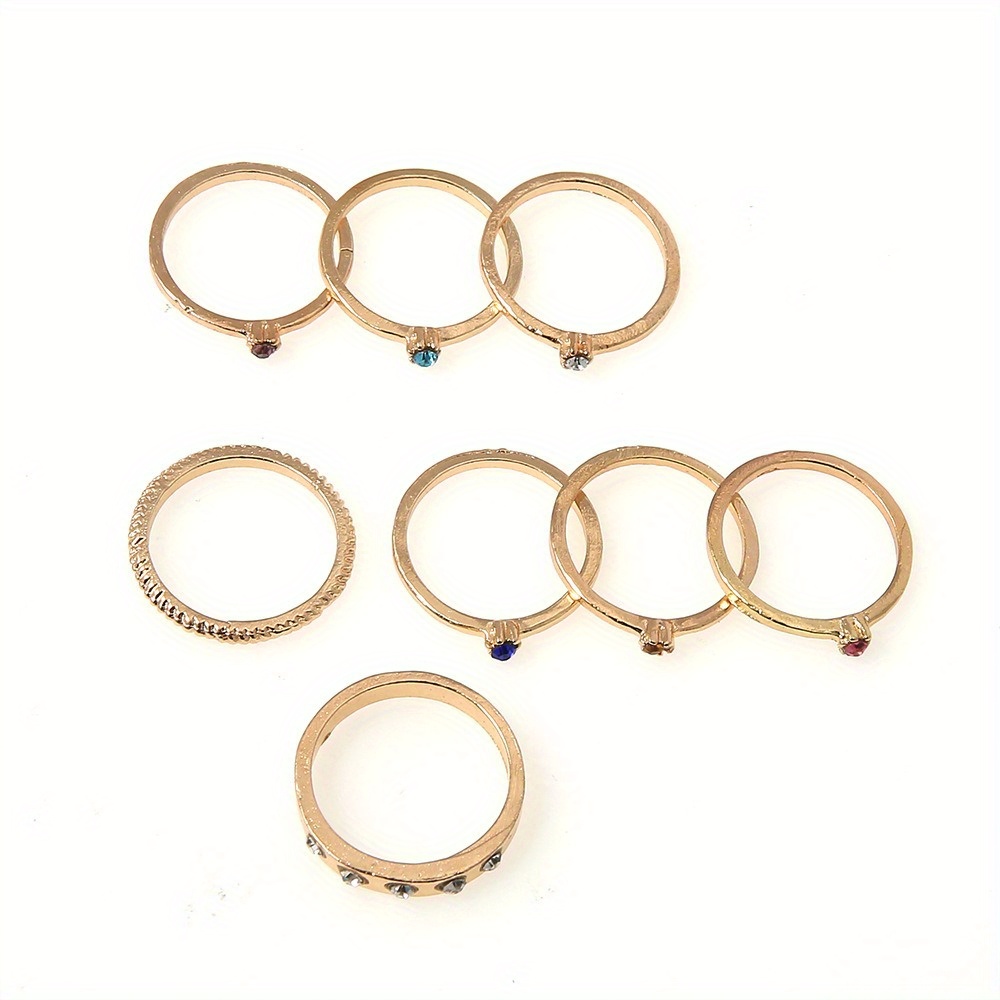 Fashion Gold Ring Multi-Color Micro Diamond Thread 8-piece Ring Women