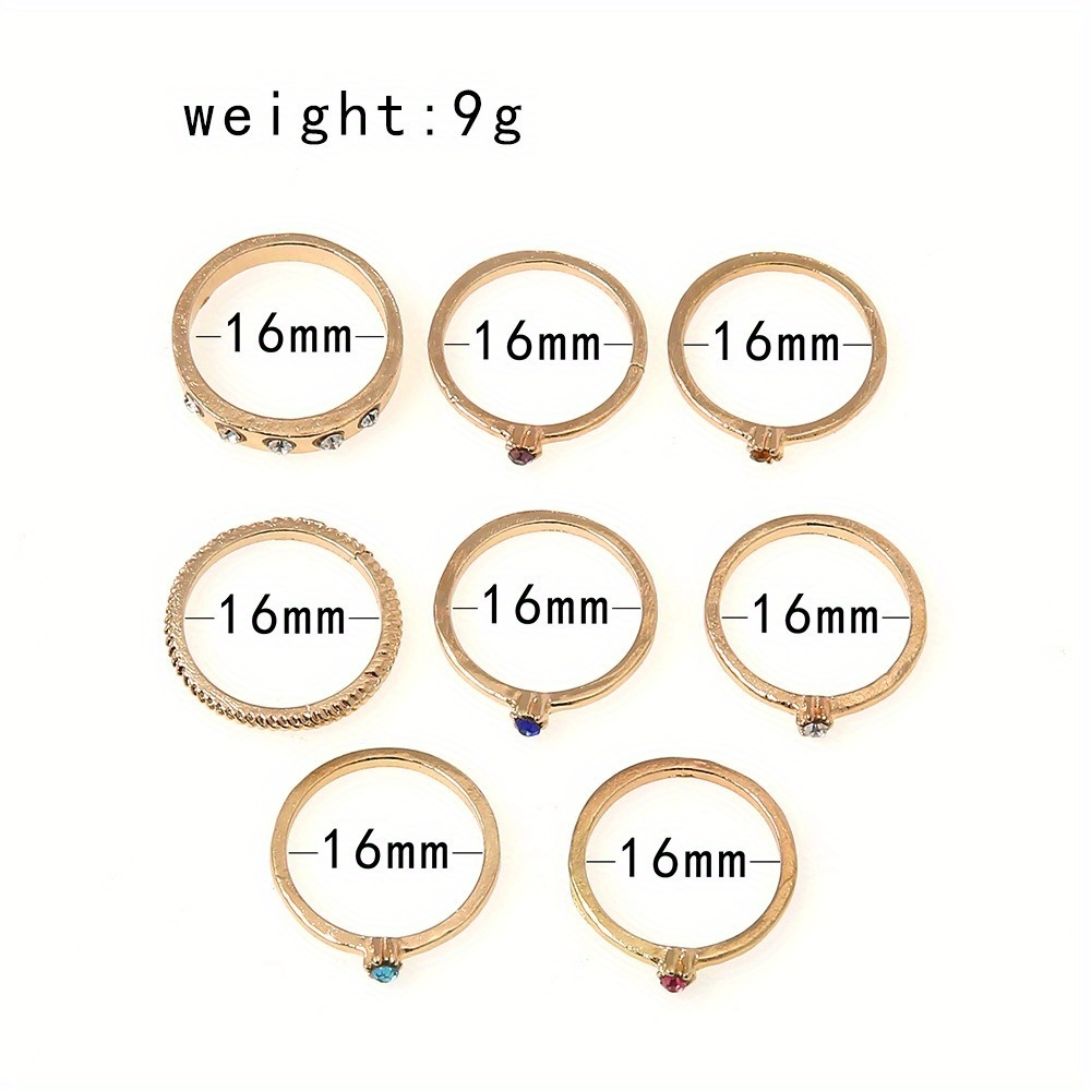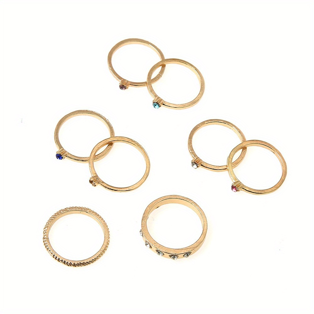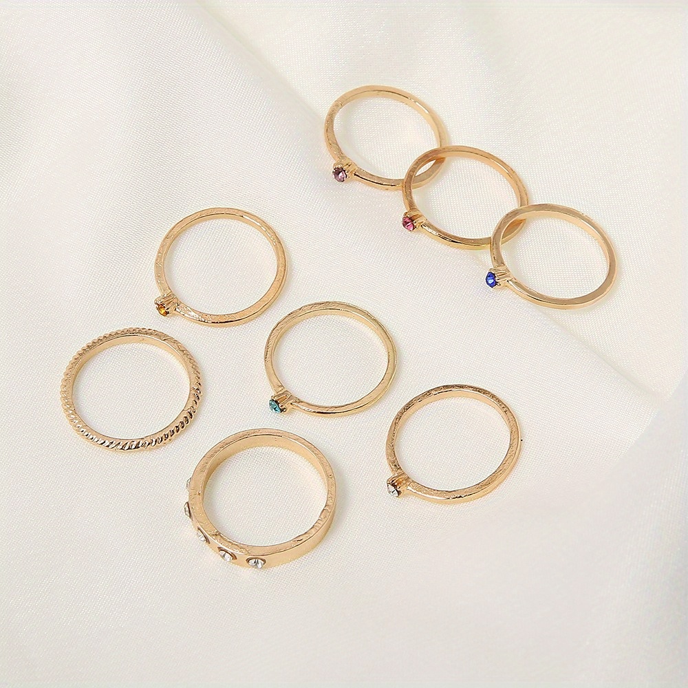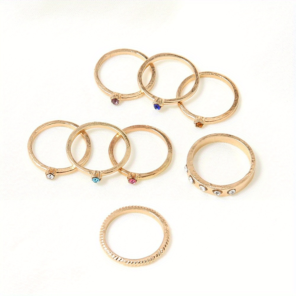 Fashion Gold Ring Multi-Color Micro Diamond Thread 8-piece Ring Women