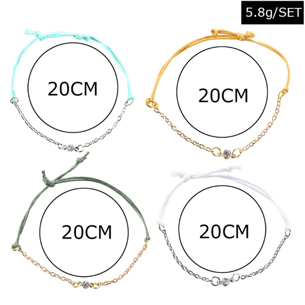 Fashion Harajuku Multicolor Rope Knot Diamond 4-piece Bracelet Women