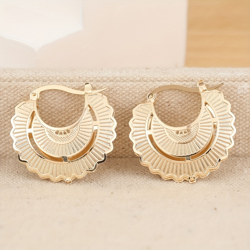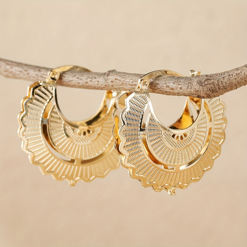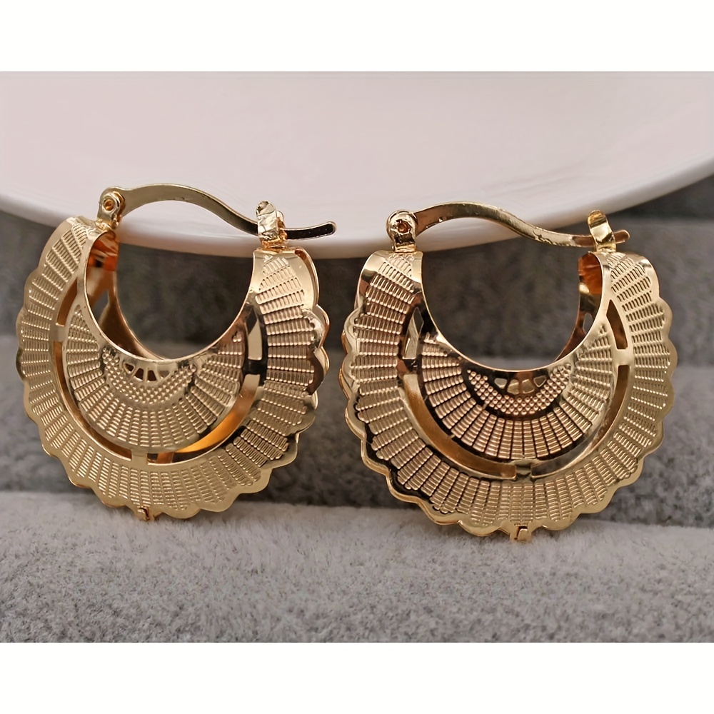 Fashion Hip Hop Rock Ring Earrings, Women's Earrings, Gold Plated Copper Ring Heart Earrings, Wedding Jewelry Accessories Gifts