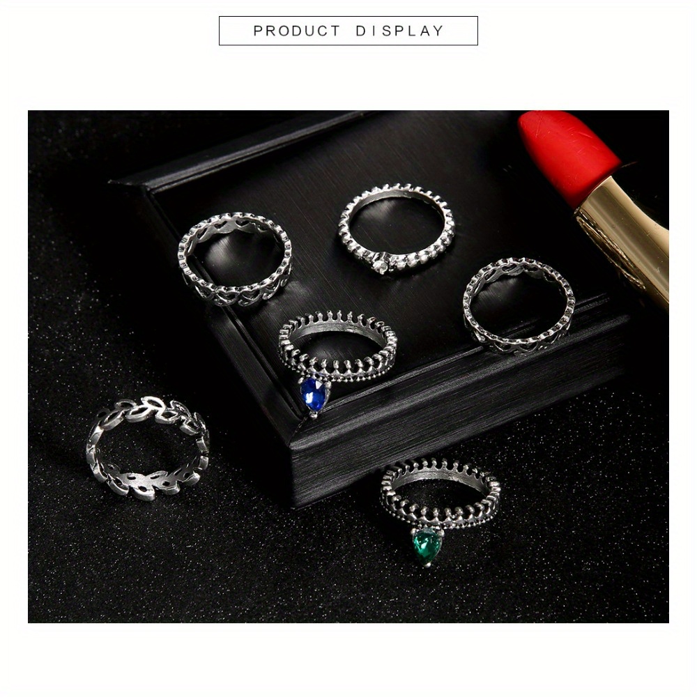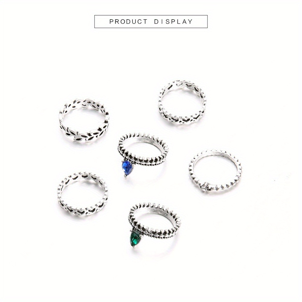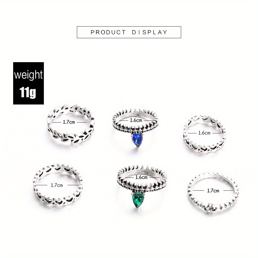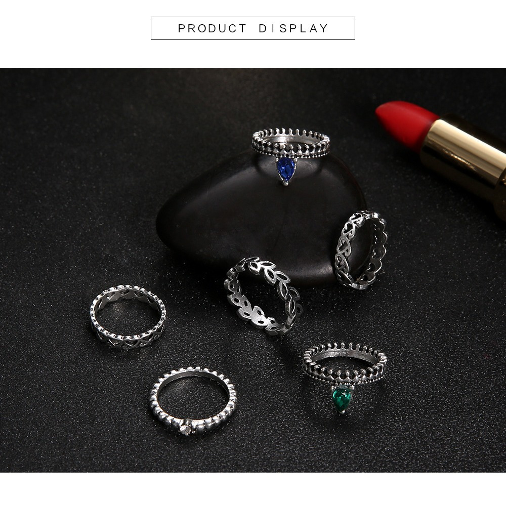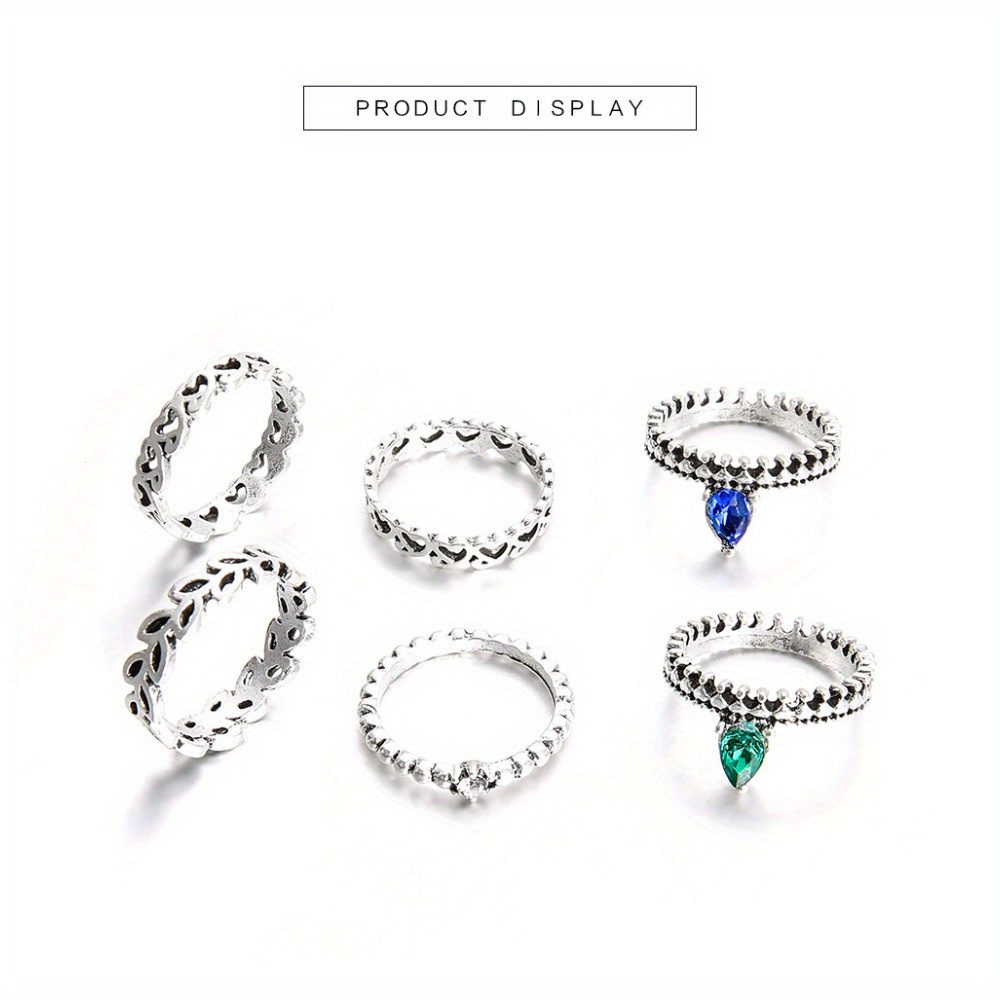 Fashion hollow heart simple diamond joint ring 6-piece combination set