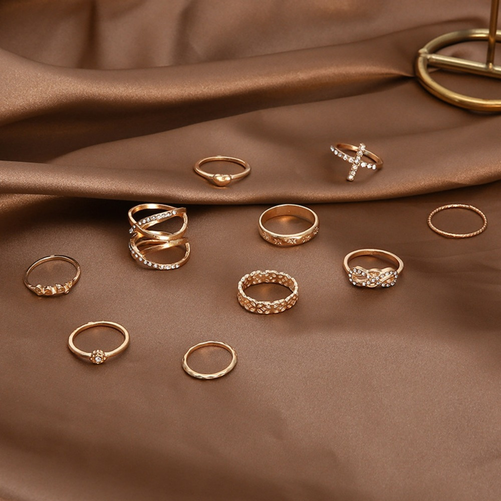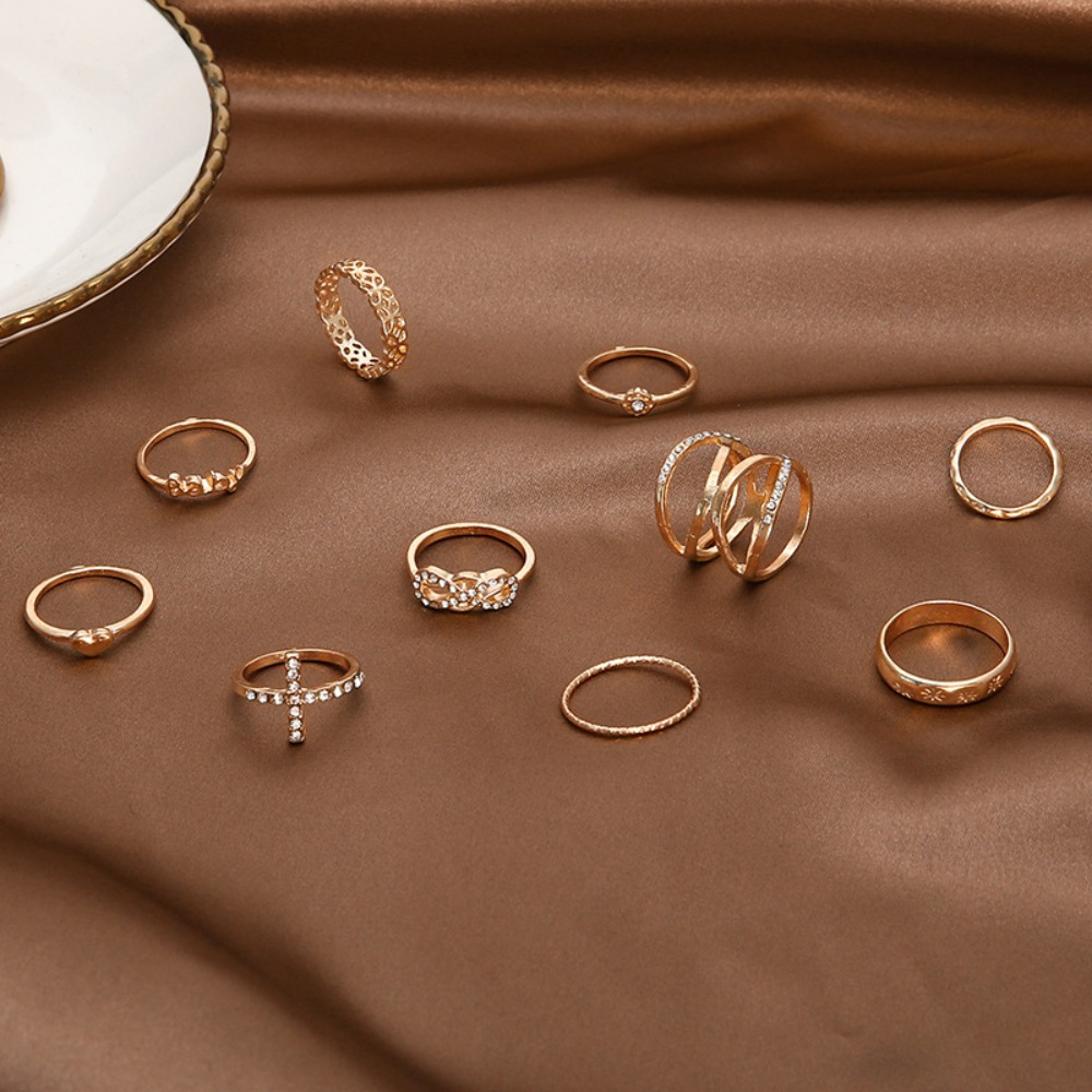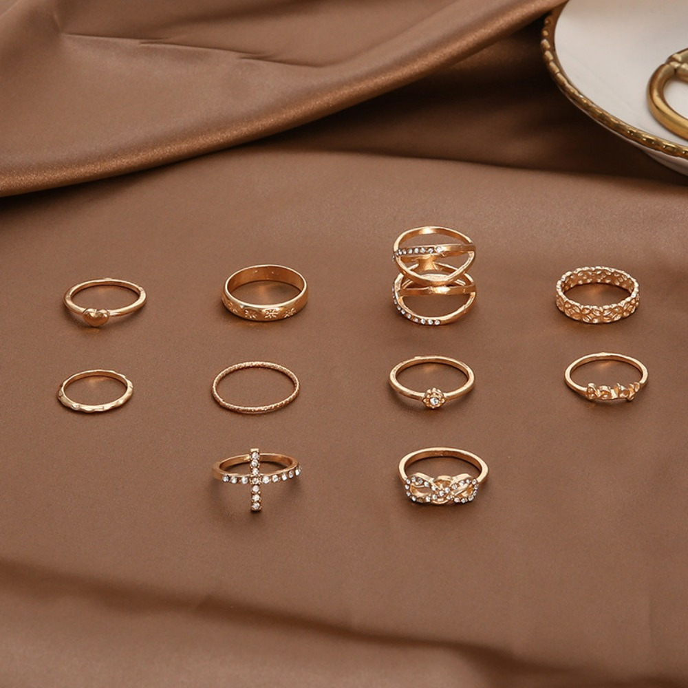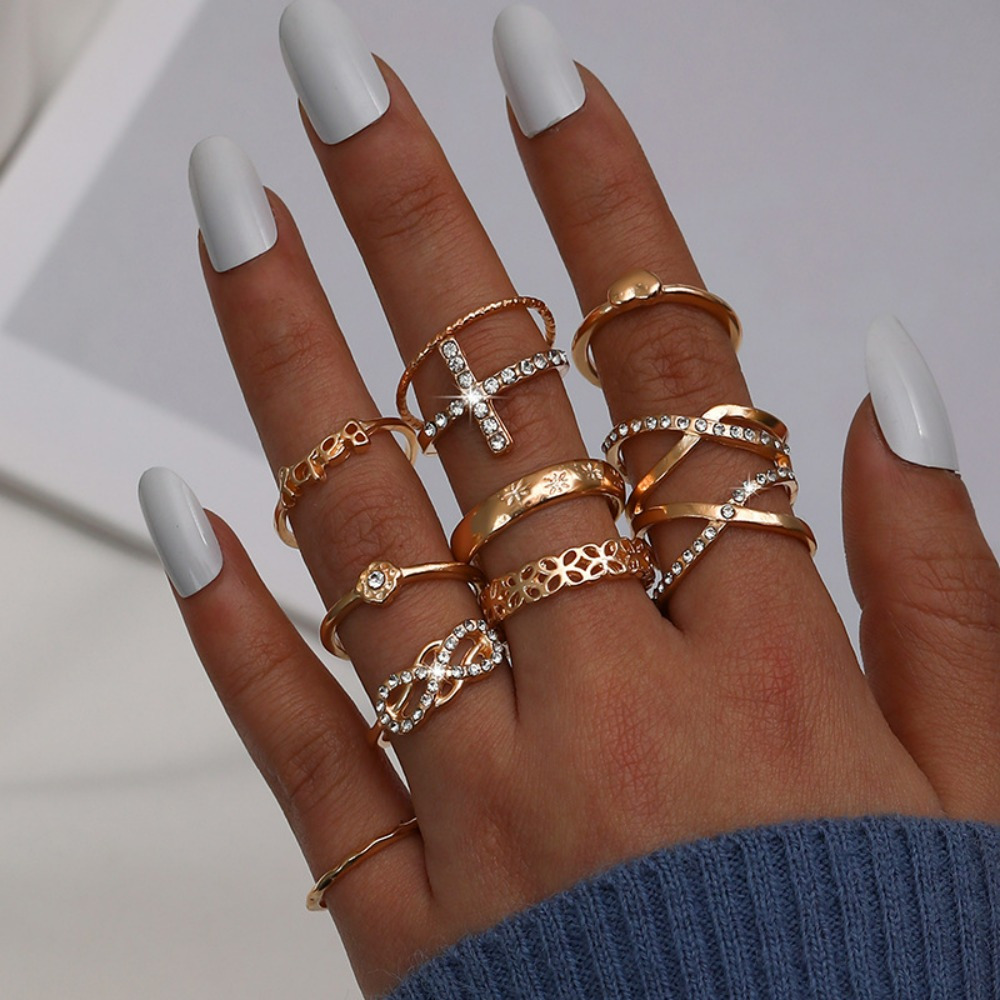 Fashion ins Feng Shui Diamond Cross Cross Love Eleven-piece Ring for Women