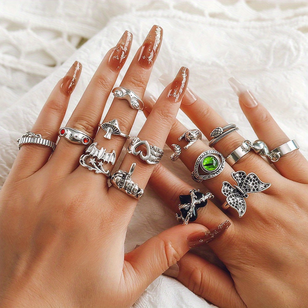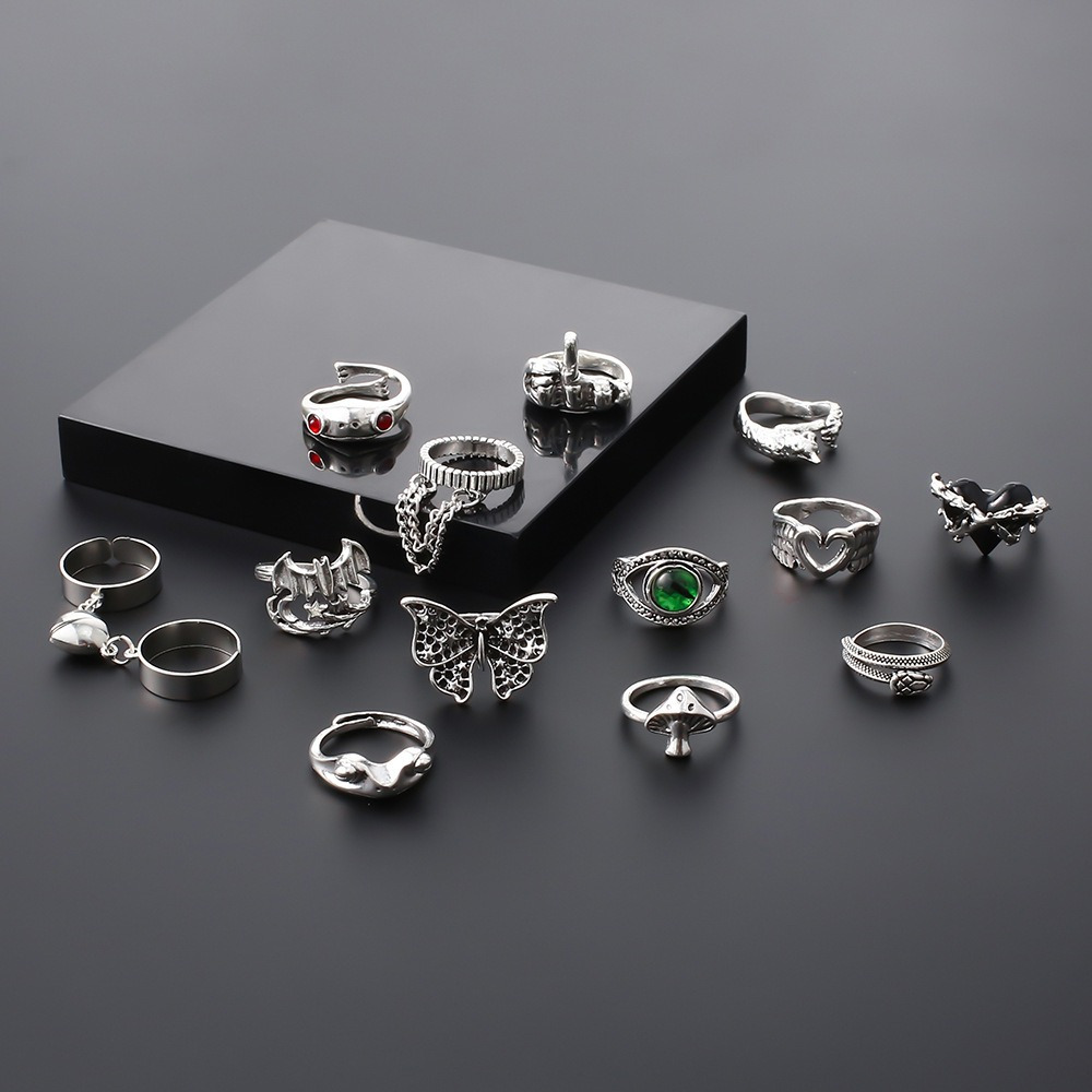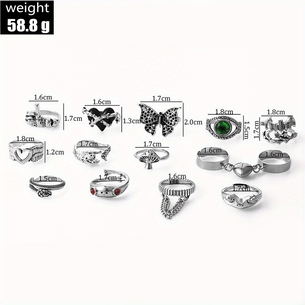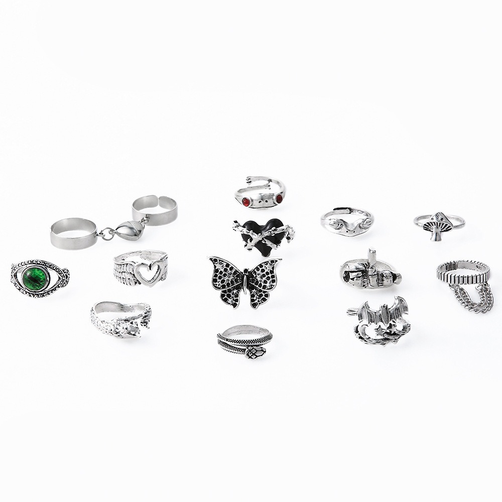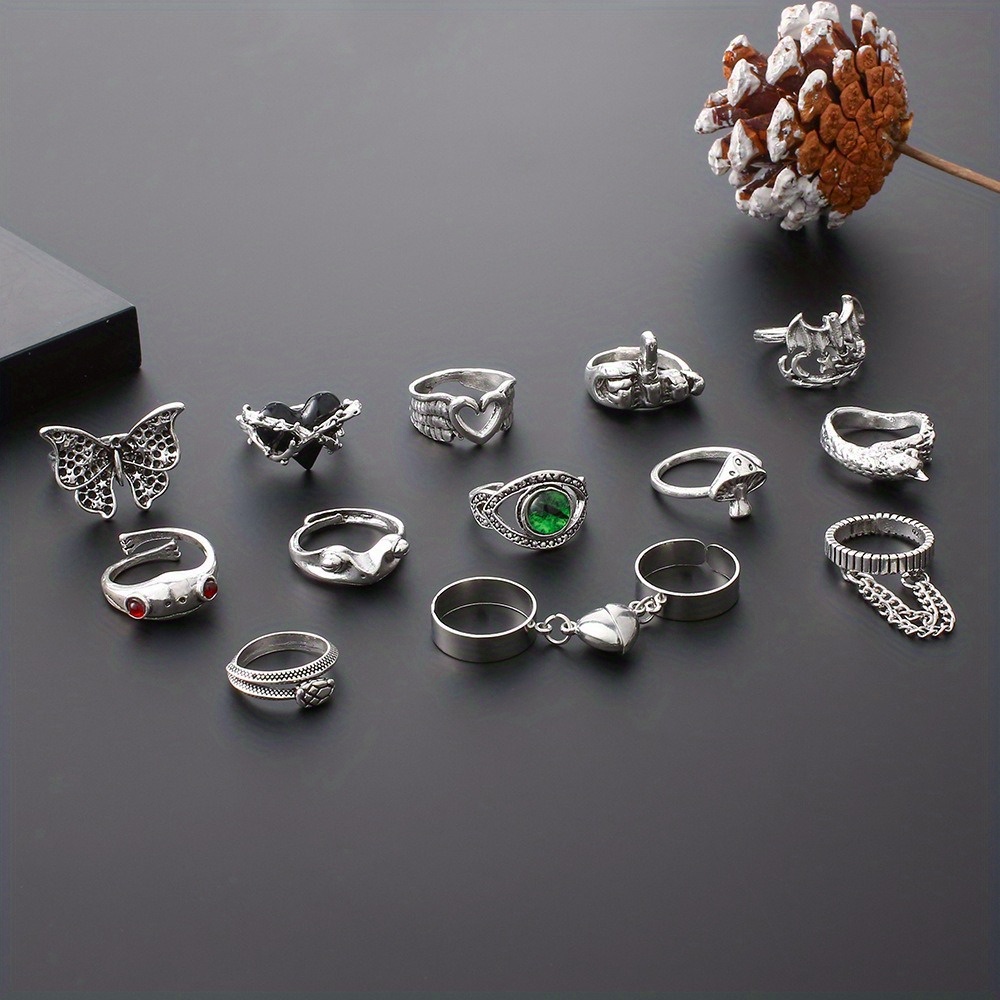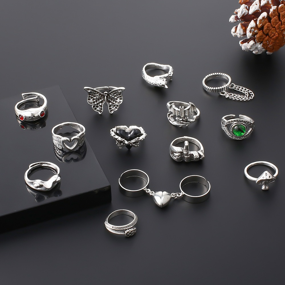Fashion Love Magnet Ring Personality Animal Elements Butterfly Frog Eyes 14-piece Ring Set